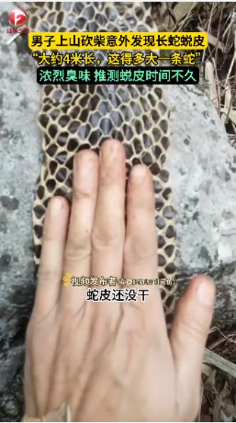 “活久见!”近日,广西河池,一男子上山砍柴时,突然闻到周围有一股恶臭味,他仔细寻找一番,竟找到一张4米长的蛇皮!男子壮着胆子上手摸了下,发现蛇皮还没有干,估计蛇刚离开没多久。网友:看着像是眼镜王蛇! “什么味道这么臭?”那天这名男子本来是上山砍柴,走在山路上时,他突然闻到一股难闻的气味,像是腐烂的东西。虽然他心生疑虑,但还是继续走了几步。气味越来越浓,他决定停下来,四处寻找源头。最终,他在一片密集的灌木丛中发现了那张巨大的蛇皮。 最初,他可能并没有意识到自己发现了什么特别的东西,毕竟在野外,蛇皮并不少见。但当他走近一看,发现这条蛇皮的长度和湿度都让他心生警惕。 4米长的蛇皮是一个巨大的体积,几乎是他见过的蛇中的最大的一条。他弯下腰,壮着胆子摸了一下蛇皮,触感湿滑,显然蛇刚刚脱皮不久。 男子随后将这一发现分享到了网上,大家都表示震惊。一些网友们纷纷猜测,这很可能是眼镜王蛇的皮。因为眼镜王蛇作为一种体型巨大、速度迅捷的蛇类,它的皮蜕得较为完整,并且蜕皮的时间大多发生在它吃饱并准备离开栖息地时。 事实上,眼镜王蛇并不像其他蛇类那样常见于城市或者是人类聚集的地方,它们更喜欢栖息在偏远的山区或森林中,且它们的攻击性非常强,特别是在感到威胁时。虽然眼镜王蛇并不主动攻击人类,但它们强大的毒性使得人类在遭遇它时往往处于极为危险的境地。 不过,男子在发现蛇皮后依然保持冷静,这在某种程度上是值得称赞的。面对如此惊悚的发现,很多人可能会因为害怕而立刻逃跑,但他却选择去摸一摸蛇皮,虽然这种行为带有冒险性质,但也表明他对自然环境充满了好奇心,并愿意了解周围的生物。 这种探索精神对许多人而言是难得的,尤其是在现代都市生活中,人们往往对自然界的生物感到陌生和疏远。 当然,面对这种发现,我们也要有一定的安全意识。蛇类,尤其是毒蛇,威胁巨大,若是身边有人遇到类似情况,切记不要贸然接近。最安全的做法是立刻远离,并且告知专业人员,避免发生不必要的危险。 总得来说,这件事不仅让人们对自然界充满了敬畏,也让人们重新审视与野生动物和自然环境的关系。这个男子的经历或许只是千千万万自然奇遇中的一件,但它却提醒了我们:大自然是多么神秘又不可预测。 信息来源: 纵览新闻丨男子上山砍柴发现4米长蛇蜕皮 文丨小王 编辑丨史叔