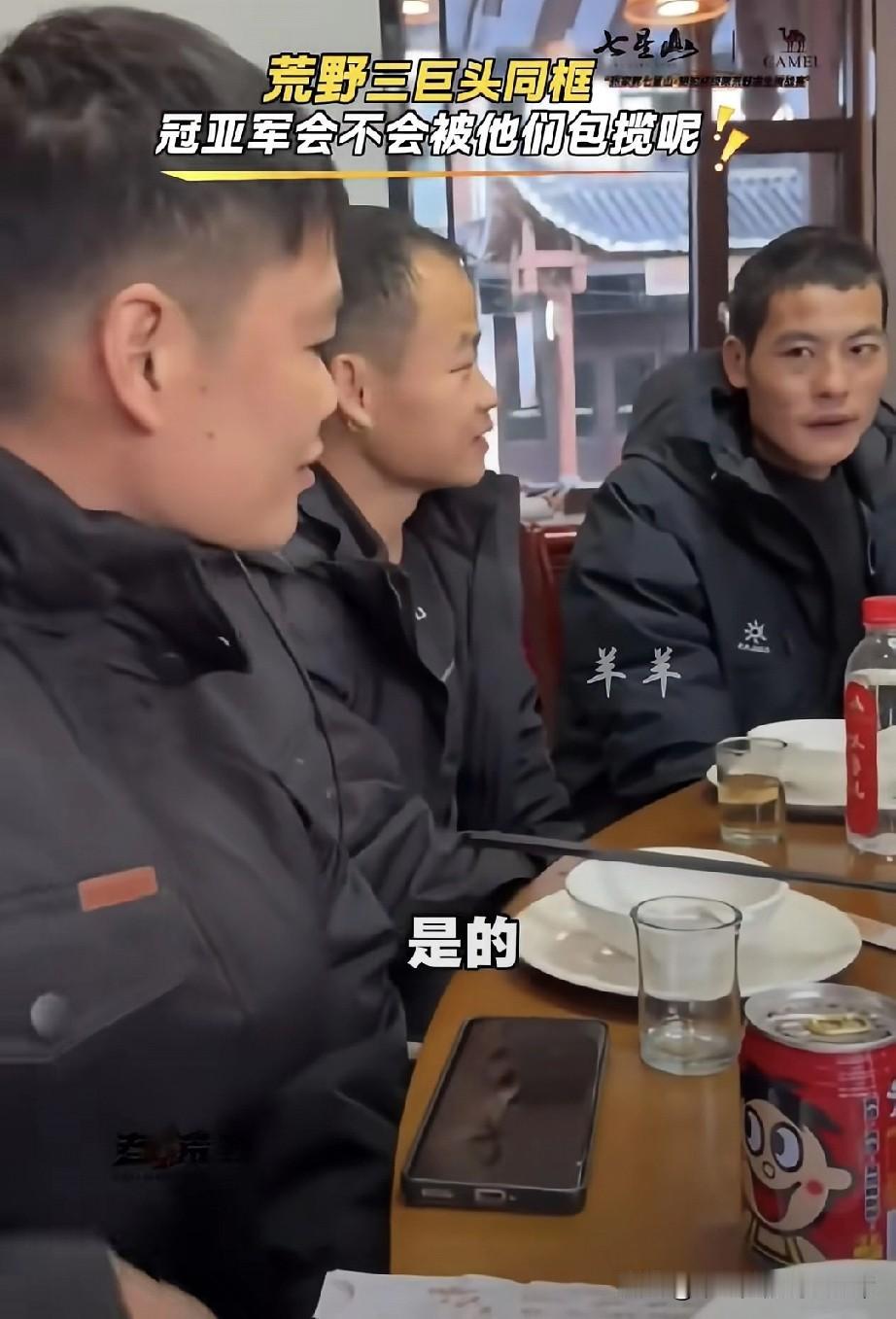 荒野求生三巨头同框聚餐,冠亚季军非他们莫属 张家界骆驼杯荒野赛的饭桌上,三个黑夹克男人凑一块儿——刀疤哥扒拉着米饭,苗王捏着茶杯笑,建哥往嘴里塞菜,镜头扫过他们臂上的“荒野”标识,弹幕直接炸了:“这仨是来进货奖牌的吧?” 有人扒出底细:俩贵州狠人+一个广西狠角色,往期赛事里不是啃生肉就是钻山洞,狠得观众头皮发麻。评论区吵翻:“这仨站那儿,别人还比啥?”“万一他们内讧抢资源呢?” 服务员刚添完可乐,刀疤哥突然拍桌:“明天先把水源占了!”苗王和建哥跟着笑—— 你觉得这“三巨头”是稳拿前三,还是会栽在“自己人卷自己人”上?