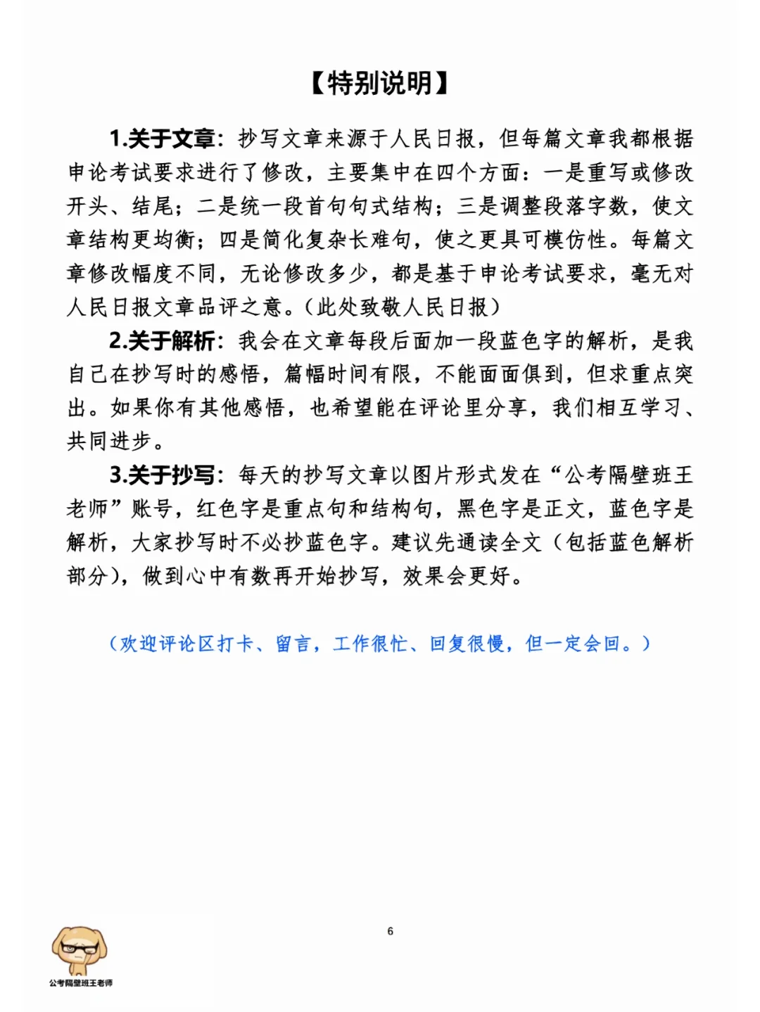 这里是公考隔壁班王老师独创的“每天半小时・申论80分”抄写团,欢迎加入我们!