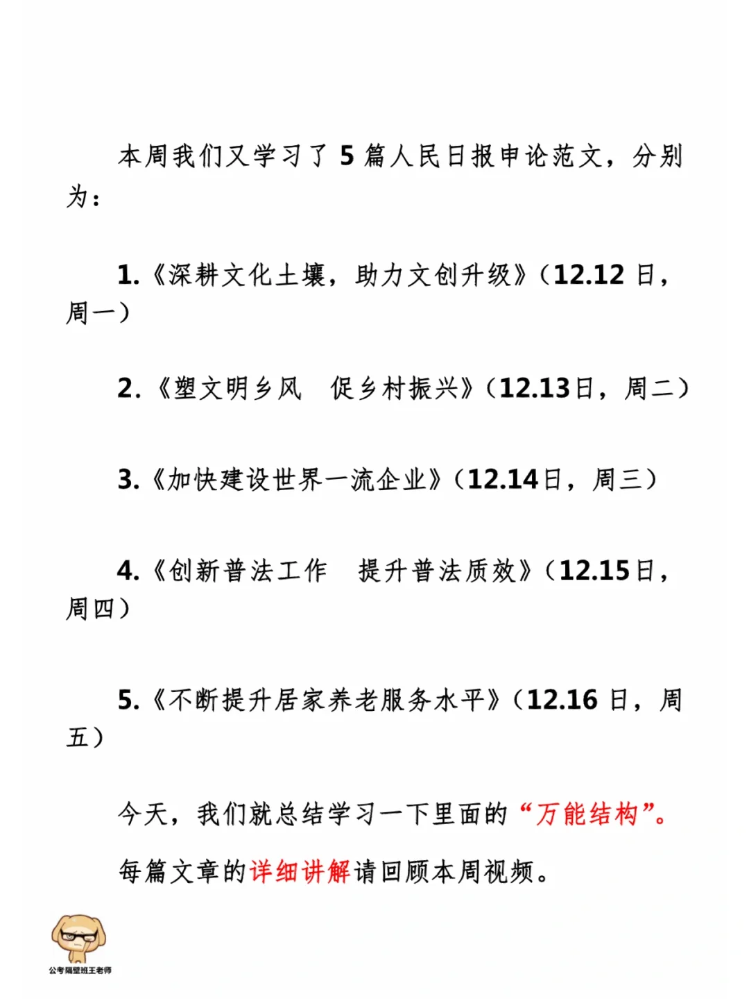 本周我们又学习了5篇人民日报申论范文,分别为: