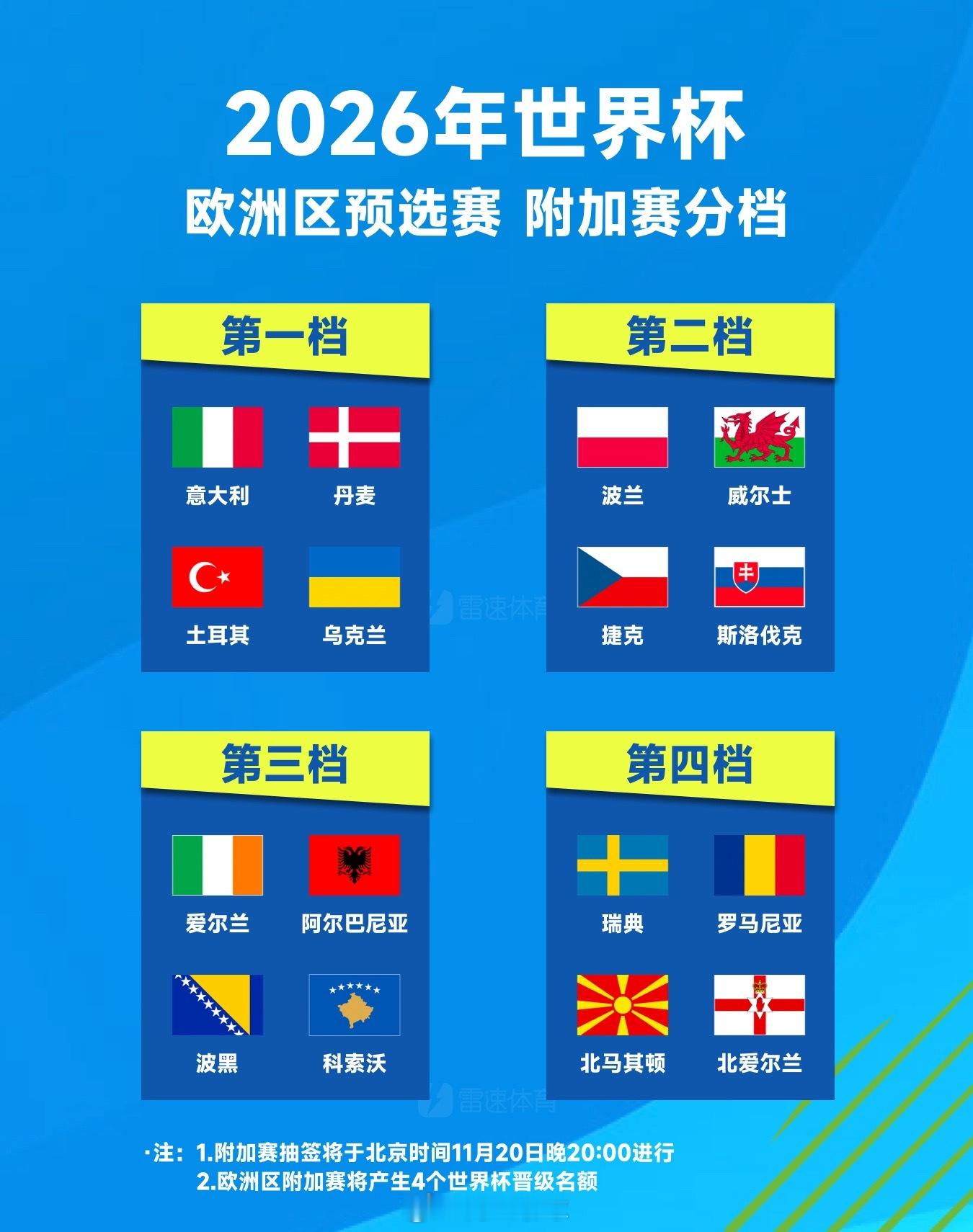 世欧预附加赛名单全部出炉,16队将争夺4个世界杯正赛名额