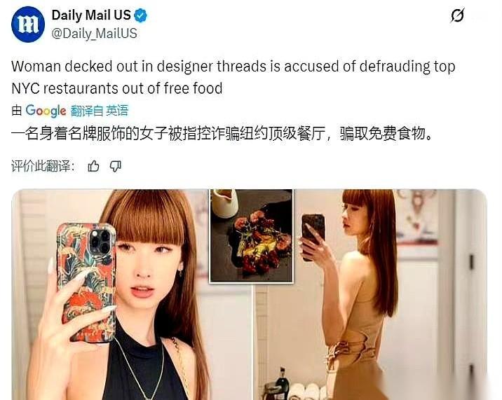 我跟你说,这世界有时候真的比小说还魔幻。 一个女的,34岁,在纽约,专挑那种死贵死贵的米其林餐厅吃饭。 吃完两手一摊:我没钱。 你以为这就完了? 高潮来了。 她跟餐厅说,要不我给你们写篇稿子,发个朋友圈,当宣传费了。 人家经理说,滚。 然后,她对着服务员,小声提议…… 能不能用身体结一下账? 你敢信吗? 我看到这新闻的时候,下巴都快掉了。 这哪是吃货啊,这简直是把不要脸当成了一种行为艺术。 她把自己当成谁了?行走的美金吗?觉得自己的照片、自己的身体,是可以随便兑换万物的硬通货? 最可怕的不是她没钱,是她打心底里觉得,这一切都理所当然。 用虚无缥缈的影响力,甚至用作践自己的方式,去换一顿本就消费不起的大餐。 这顿饭,吃的不是食物,是虚荣。 而买单的,是她早就碎了一地的尊严。