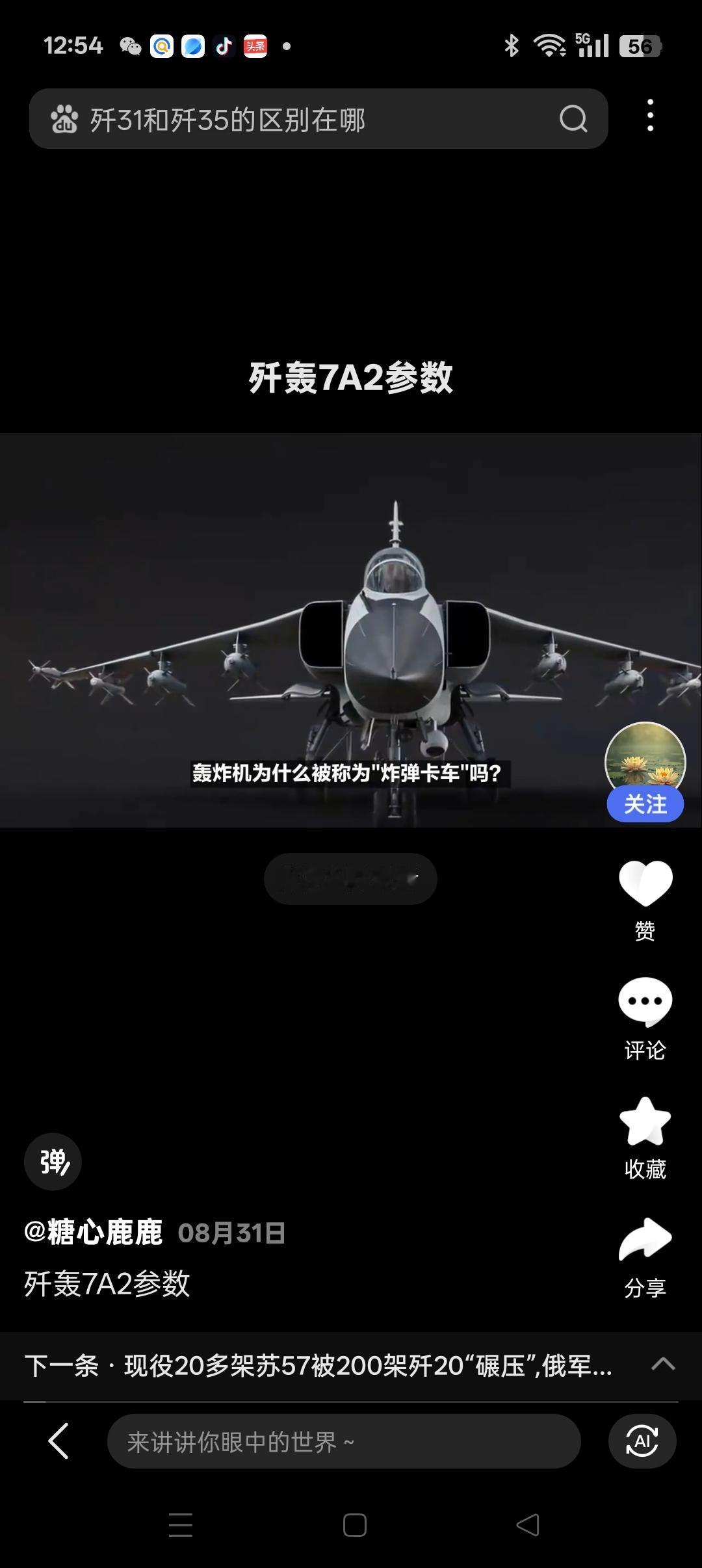 魔改歼轰7A,打造又一款炸弹卡车 炸弹卡车是歼16的雅称,而对歼轰7A的魔改,将会打造出中国空军的又一款炸弹卡车。 歼轰7A2是中国在歼轰7A基础上深度改进的战斗轰炸机型号,于2022年11月在第14届中国航展首次公开亮相,主要承担对地/对海精确打击任务,预计将服役至2030年。 一、升级背景与定位 歼轰7A2的改进旨在延长现有机队服役周期,提升作战效能,同时控制成本。作为歼轰7系列的最新改进型,它延续了该系列大航程、强挂载的特点,承担中低强度对地/海打击任务。升级后,其综合作战能力达到四代半标准,成为解放军空军“空天一体、攻防兼备”战略转型的重要支撑。 二、核心升级内容 1.动力系统优化 换装国产涡扇9B发动机,推力提升至10.2吨,推重比提高10%,油耗降低15%。发动机无故障运行时间从500小时延长至800小时,维护周期缩短30%,使最大航程从3600公里增至3800公里,显著提升了持续作战能力。 2.航电与信息化升级 保留JL-10A脉冲多普勒雷达,但升级信号处理系统,增强对地探测能力,支持合成孔径雷(SAR)模式和地形跟踪/回避模式。 换装新型任务计算机、数字化电传飞控系统和多功能显示器,提升自动化水平与数据处理效率。 加装K/RKL700A、K/RKL800电子干扰吊舱,具备多目标干扰和区域性电磁压制能力,可同时干扰4个威胁目标。 3.武器系统增强 最大挂载能力从6.5吨提升至9-10吨,外挂点增至11个,支持“野兽作战”模式饱和打击。 新增AKF-89A隐身布撒器(射程数百公里)、云箭1000-1型激光制导钻地弹(可穿透6米混凝土)、AKF-88C增程空地导弹等防区外精确制导弹药。 兼容YJ-83K空舰导弹、YJ-91反辐射导弹及多种制导炸弹,强化对海、对陆精确打击能力。 三、性能提升与实战意义 1.作战半径与生存性:作战半径维持1600公里以上,低空突防能力结合电子干扰吊舱,显著提升战场生存率。 2.任务灵活性:通过模块化维护和数字化管理,地勤效率提升30%,适应复杂战场环境下的快速部署。 3.战略价值:作为低成本延寿方案,歼轰7A2的升级费用不足新机三分之一,维护成本降低27%,有效缓解歼-16等新型战机的任务压力,确保解放军对地/海打击力量的梯次配置。