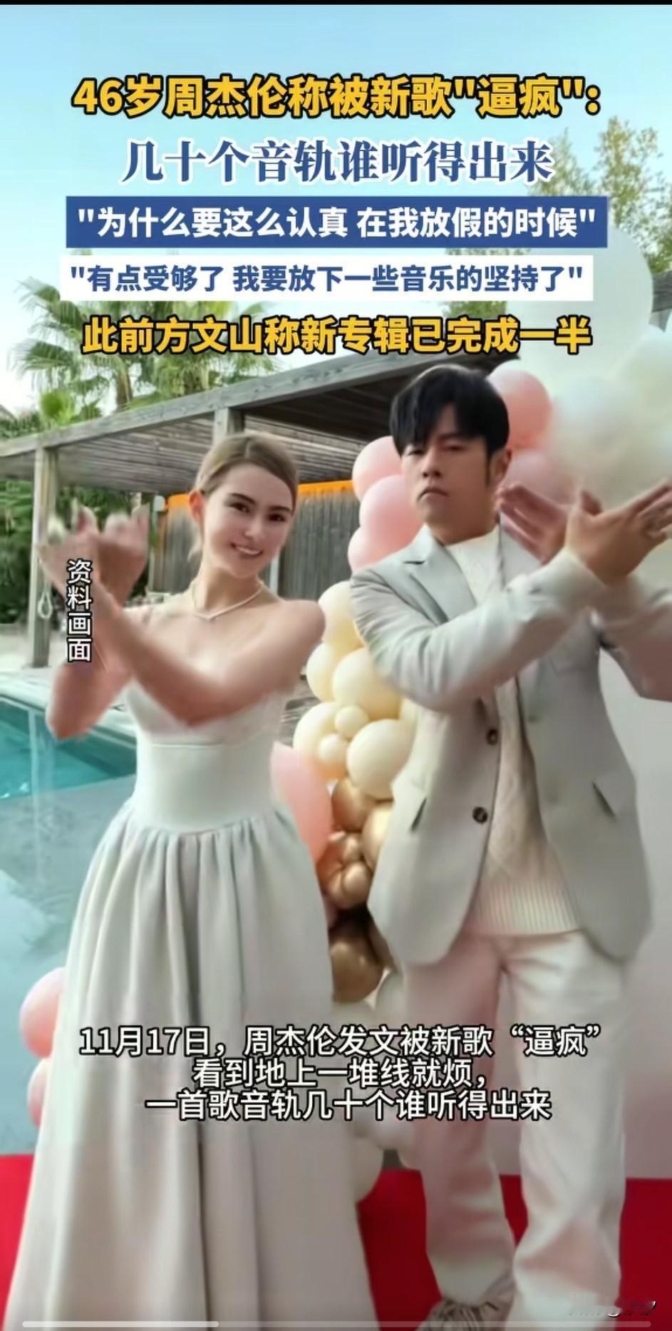 47岁的周杰伦称新歌逼疯了, 周杰伦的新歌怪不得每首都是经典, 原来是他真的非常认真, 天生就是的完美主义的人, 几十个音轨谁听的出来, 但他真的每一个音轨都努力做到最好, 不行就推倒重来, 这让他非常的痛苦, 他表示自己有点受够了, 要放下一些音乐的坚持了, 完美主义有时候真的能把人逼疯, 此前方文山就表示他的新专辑已经完成了一半了, 这对于周杰伦的粉丝来说是个好消息, 期待周杰伦的新歌可以做的更好, 毕竟音乐才子可不是白叫的, 大家对于周杰伦对音乐追求完美怎么看? 周杰伦 周杰伦海报 周杰伦作品 周杰伦帅图 周杰伦歌单 周杰伦唱法