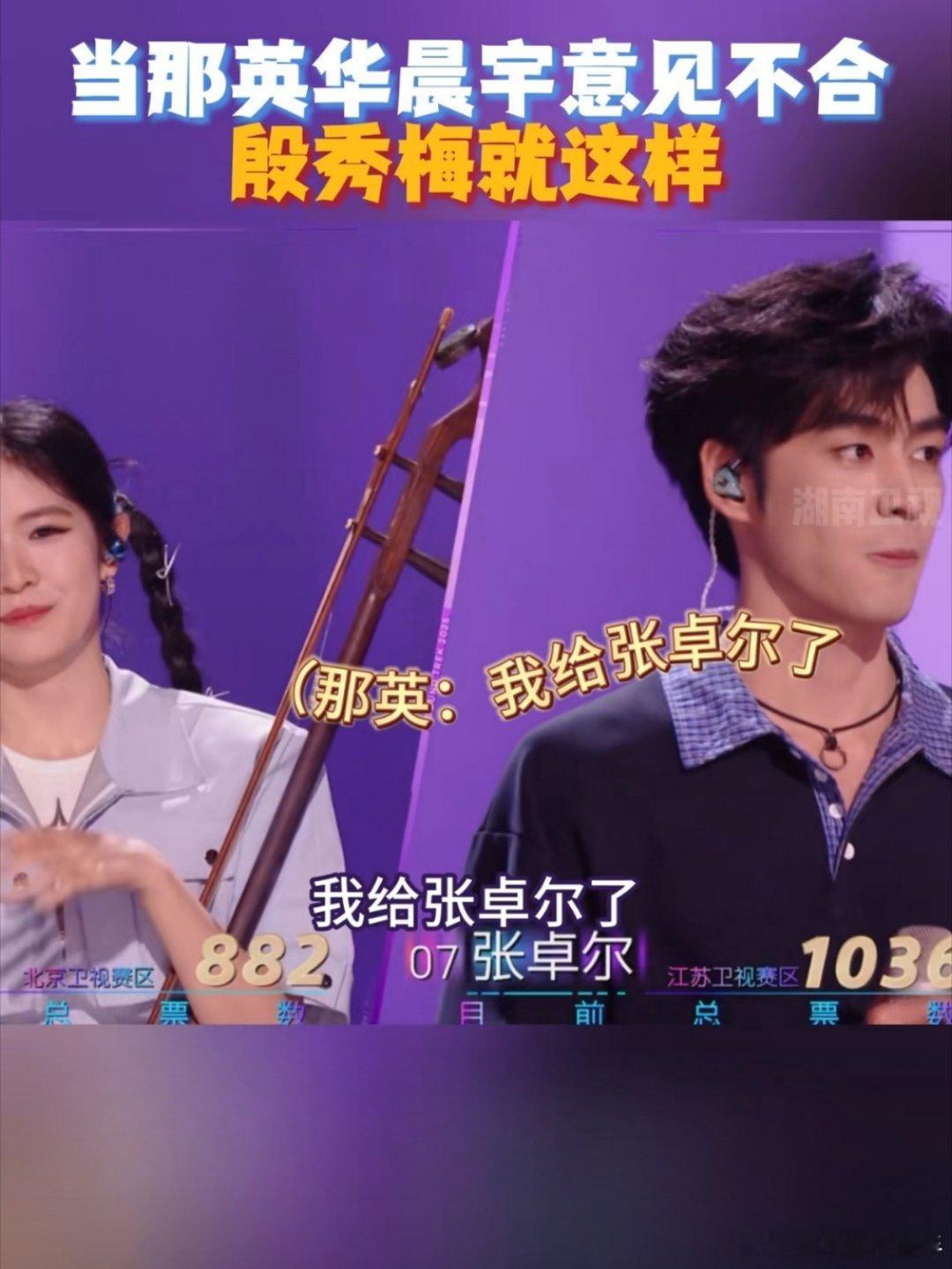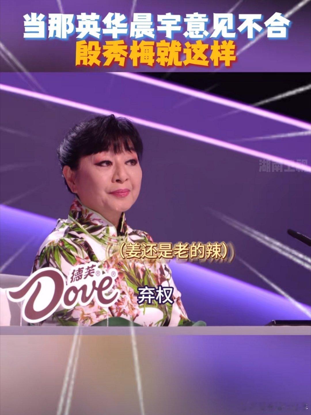 殷秀梅一点都不内耗,当遇到那英华晨宇一人给一个选手一票的情况,直接弃权,不参与争