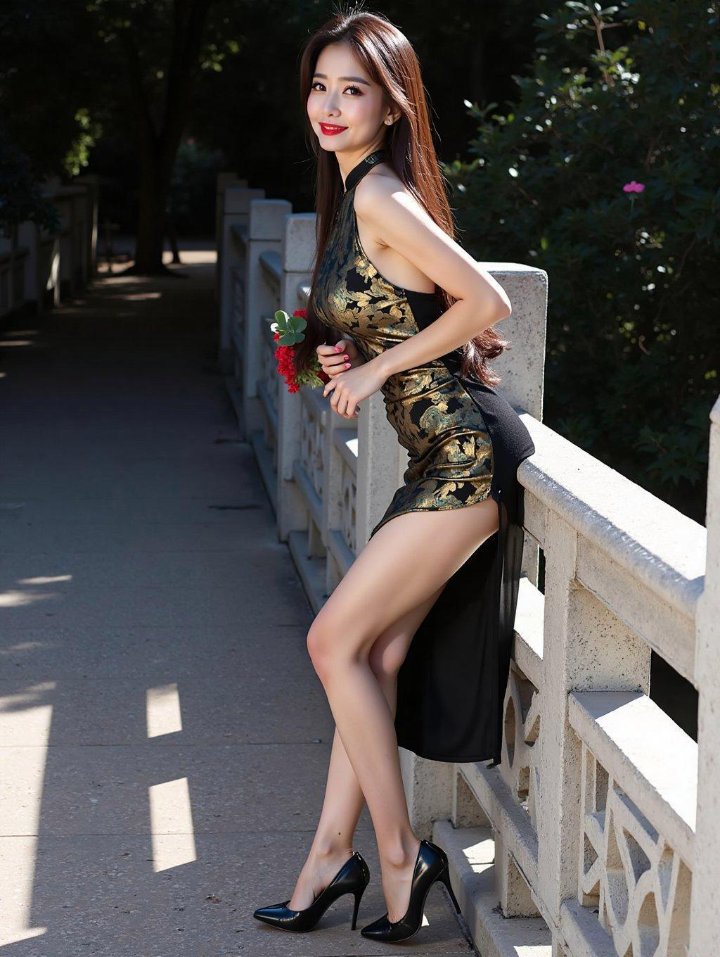哇,这妹子穿旗袍也太有范了吧,腿长就是任性!