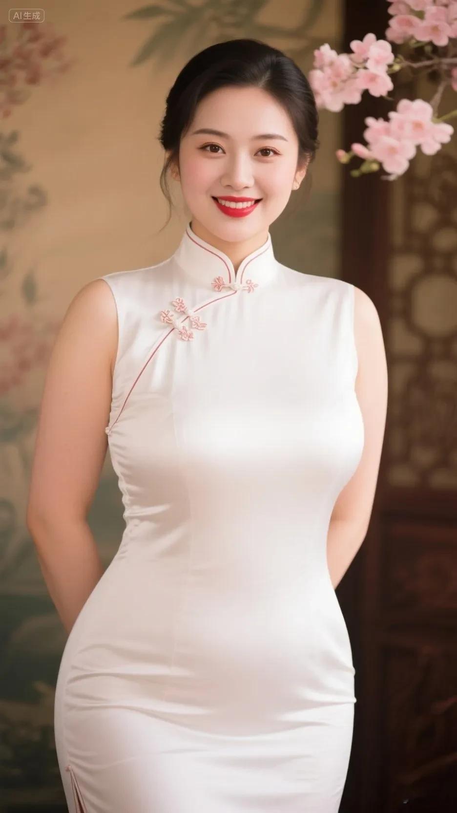 丰腴美女着新中式白连体衣,瓷肌透粉太撩人