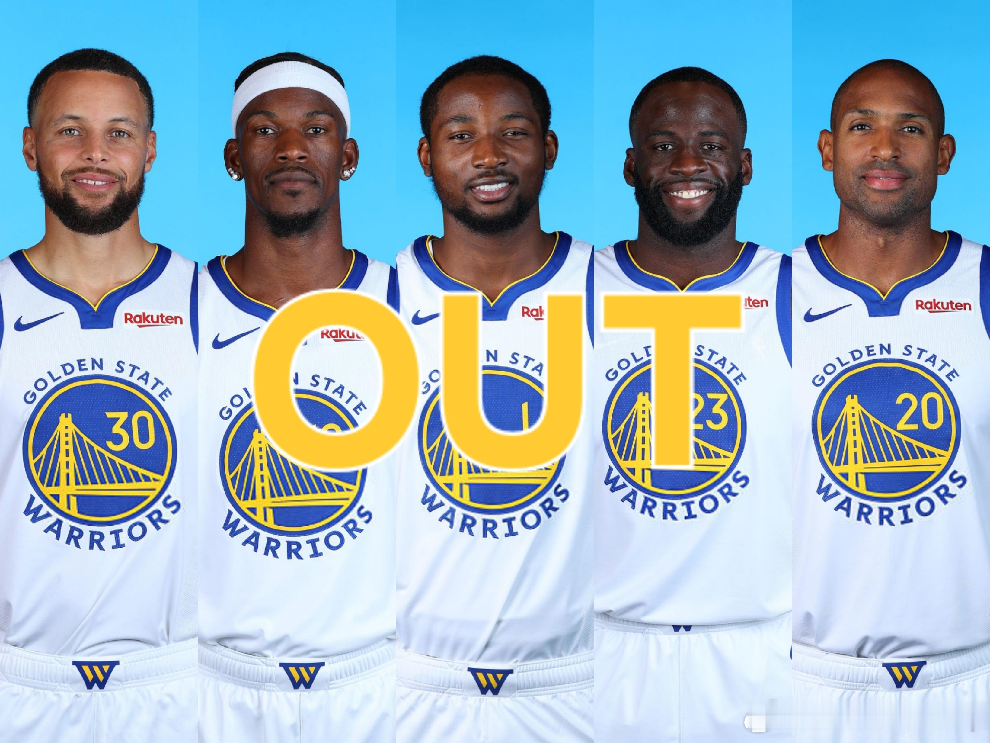 老将今天全休,库明加继续不打。缺阵名单:库里,巴特勒,格林,霍福德,库明加这五人