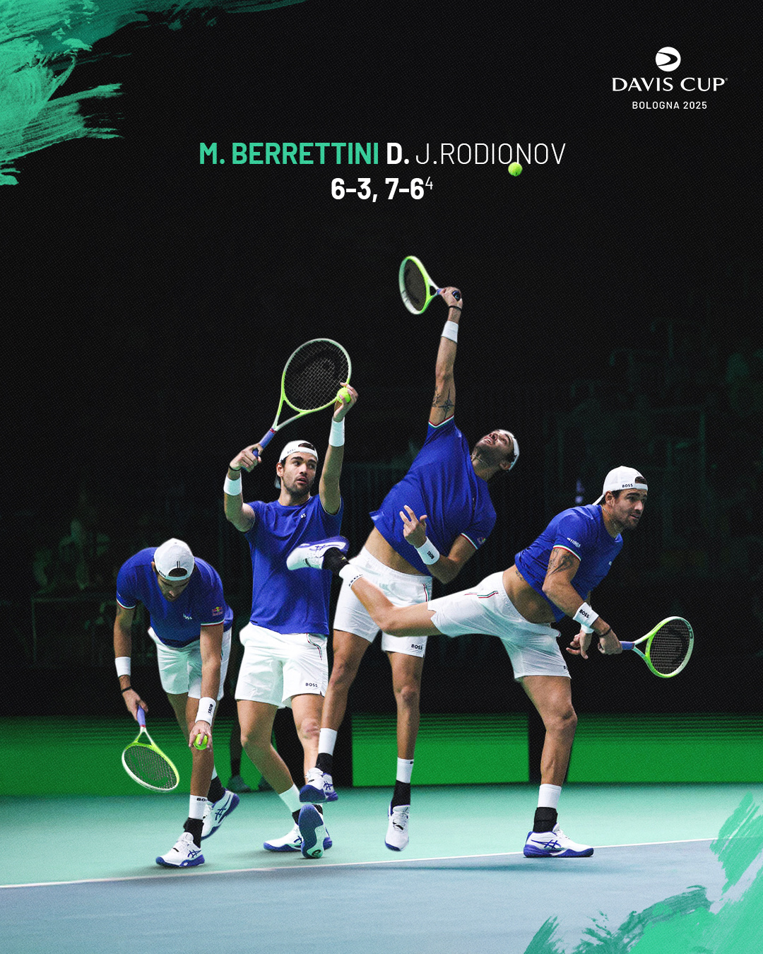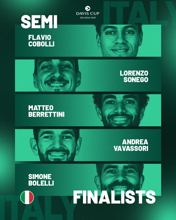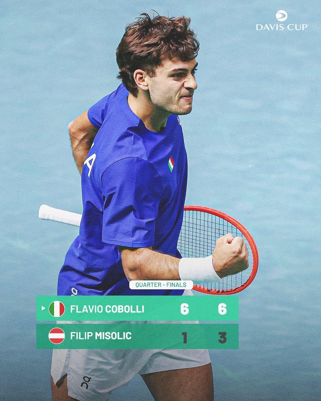 意大利2-0击败奥地利,跻身四强,将战比利时。贝雷蒂尼6-3、7-6罗迪奥诺夫科博利6-1、6-3米索利奇