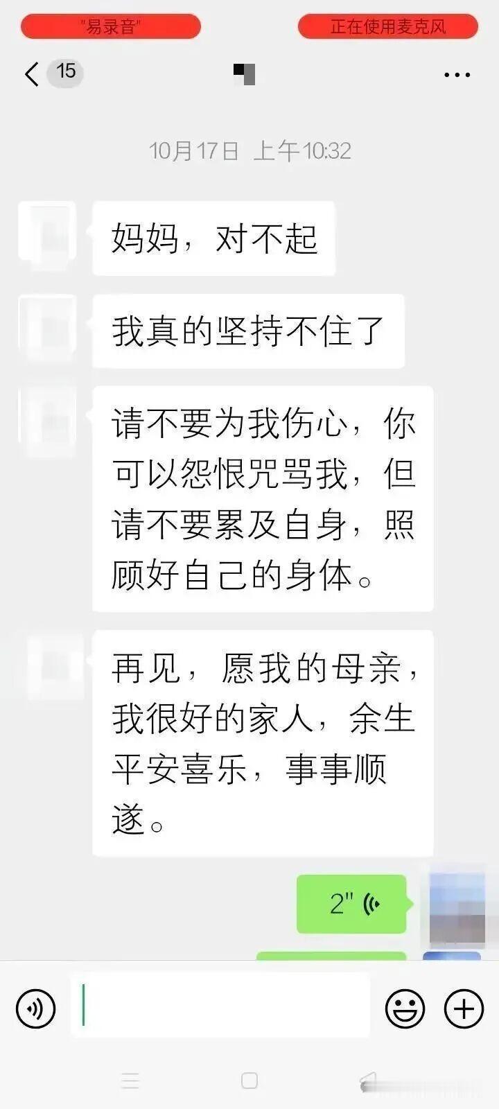 培华学院轻生女大学生这件事越看越觉得让人觉得唏嘘、 目前,女学生与辅导员的聊天记录已经曝光,单从聊天内容来看,辅导员这口气真的过于强硬了,这盛气凌人的语气真的让人看了很不舒服。 年轻大学生一般都自尊心强,况且女学生是因事回家,母亲生病本来就心乱,又被辅导员劈头盖脸的说了一顿,心理防线一下子就坍塌了。 不过辅导员也算聪明,意识到情况不对,后续又补发了这么多消息,但可惜都没意义了,好端端的一个女大学生,就这样走了。 代入女大学生的心理想一想,自己面临毕业,辅导员一句话可能就会让自己拿不到毕业证,无法顺利找工作,内心一定会无助和绝望。