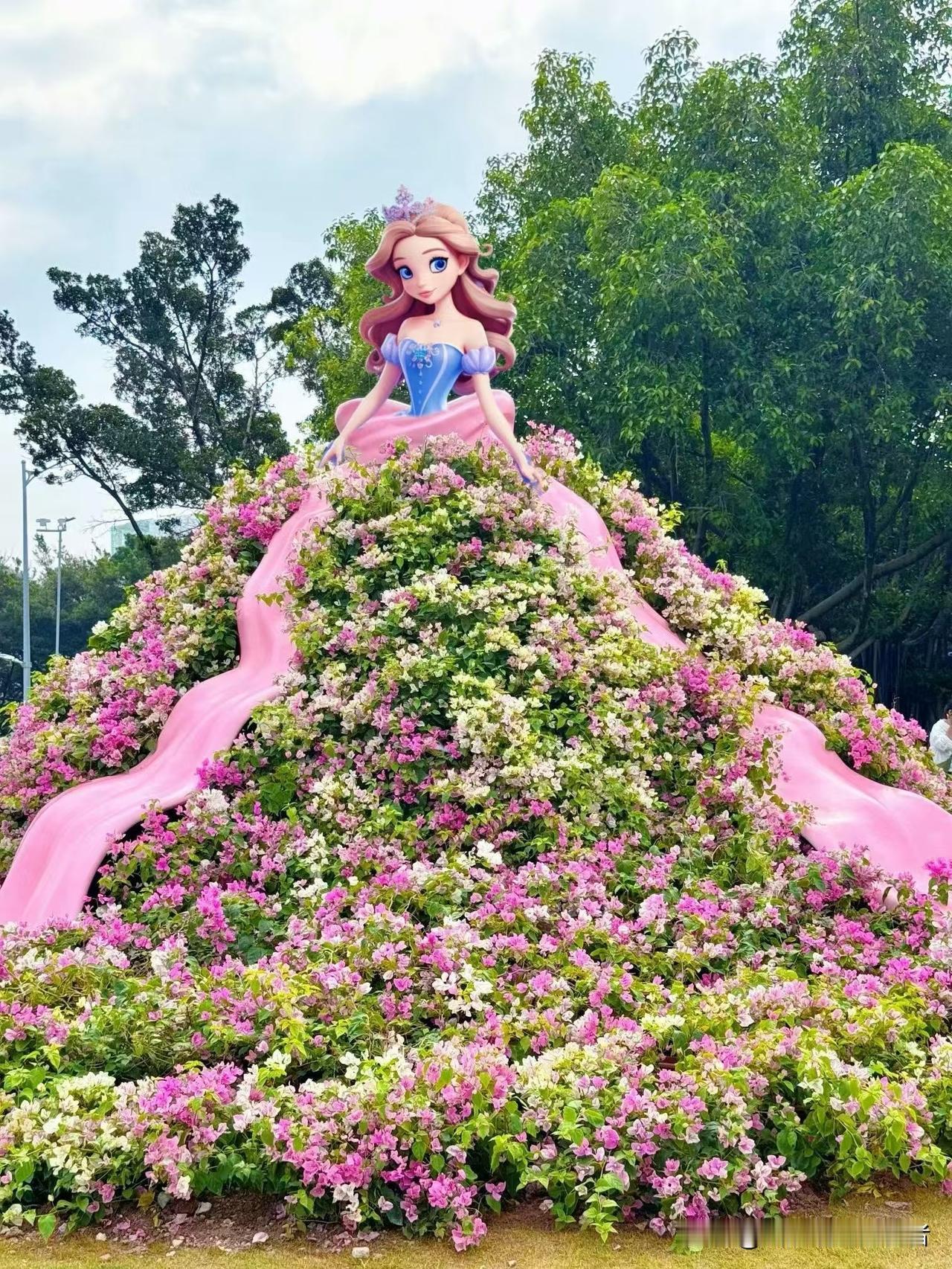 在广州塔的映衬下,花园如打翻的调色盘,绣球与各色繁花在绿意中绽放,城市的摩登与自然的绚烂在此交融,每一眼都是春天的浪漫献礼。 童话公主从花团锦簇中走来,三角梅织就的裙摆浪漫至极,在这片花海秘境里,童趣与花韵碰撞,仿佛闯入了专属春日的梦幻童话镇。