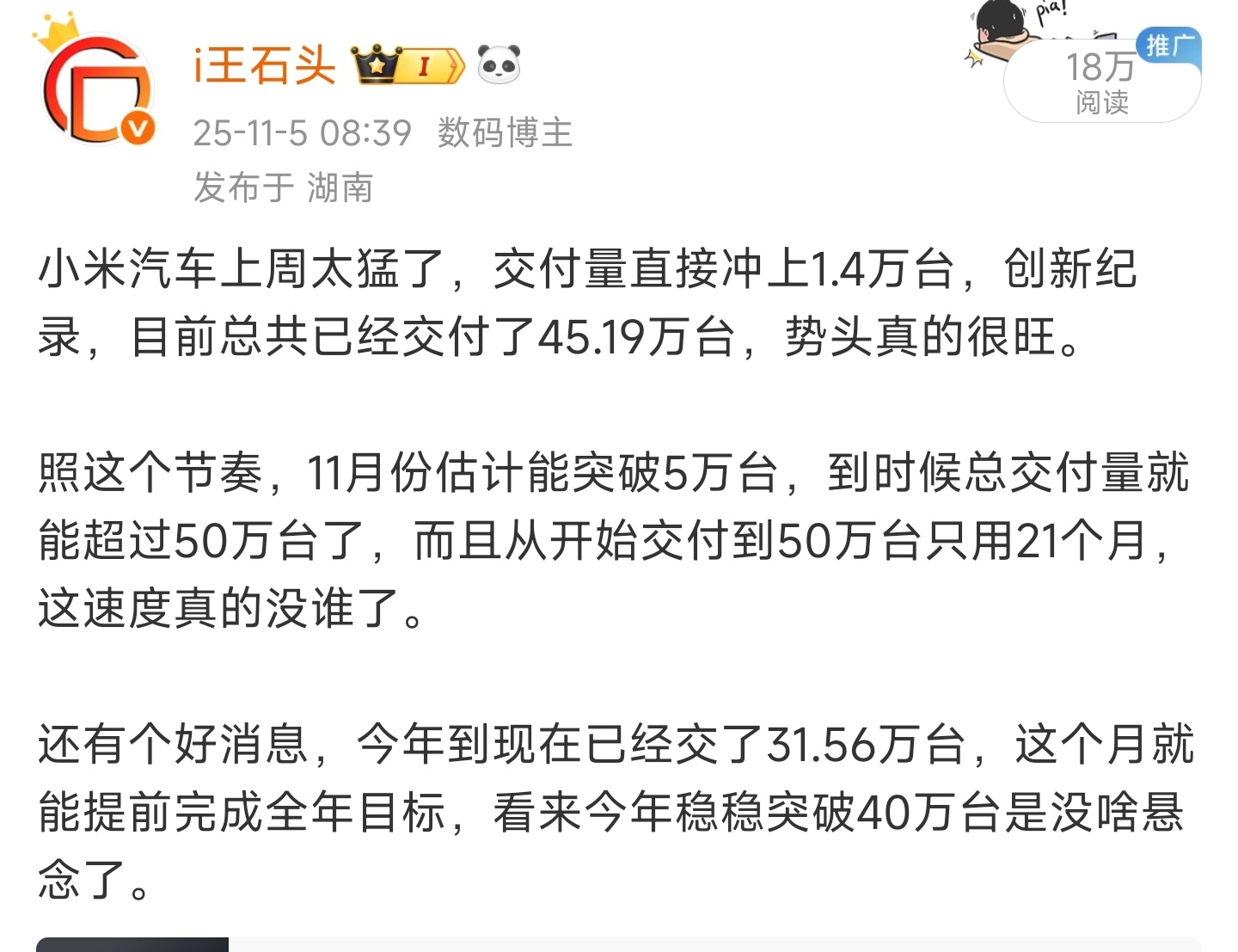 刚刚,小米汽车第50万辆整车正式下产线了。上个月小米汽车交付4.8万台,本周末或下周初交付超过35万台,将提前一个月完成全年交付目标。