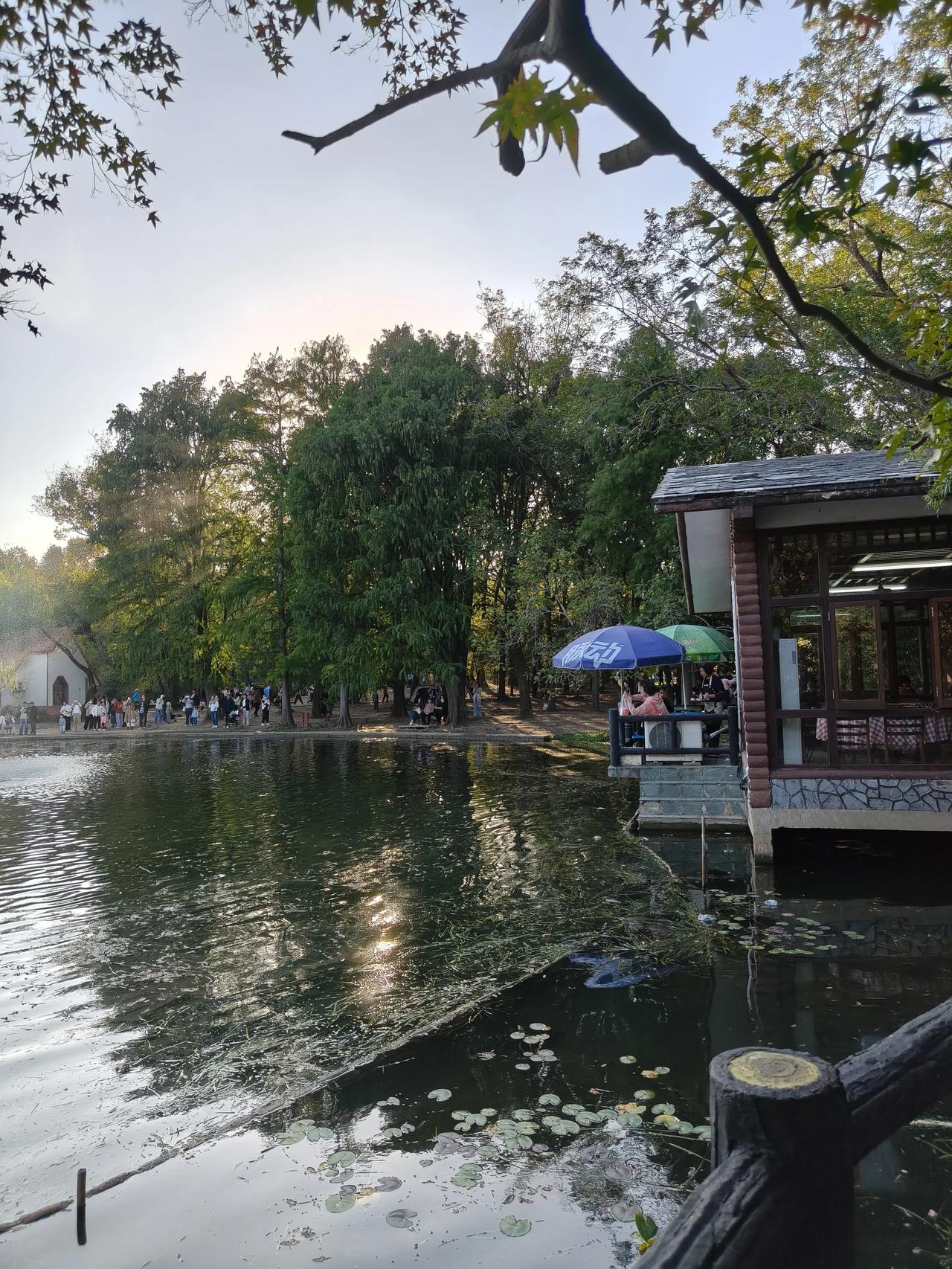 冬日美景随手拍实景图分享! 共青森林公园菊花展随手拍~🌲 公园餐厅旁的喷泉⛲去的晚了, 午餐已经结束了!只喝了杯咖啡☕