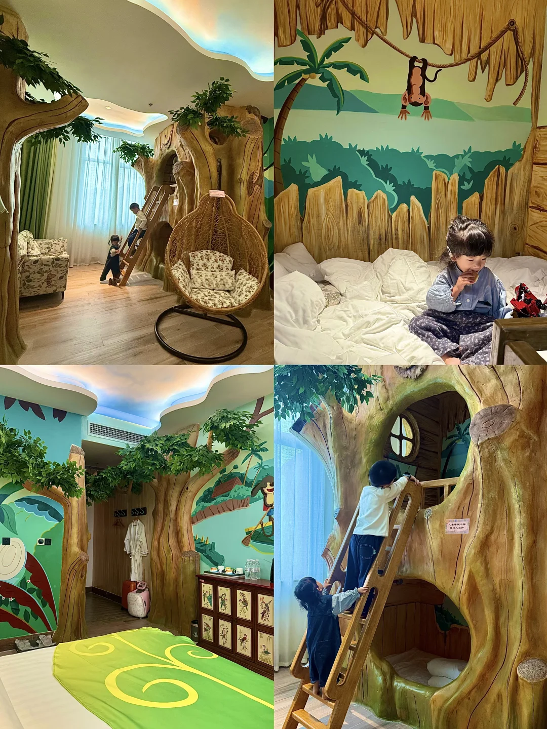 我们住在欧乐堡主题酒店(树屋),性价比高,体验好,玩的项目都在附近!我们定的亲子房,两大两小,住的很舒服!厕所还设计了亲子马桶🚽,真的好贴心哈!