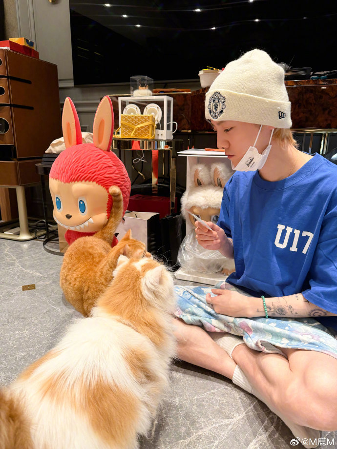 鹿晗晒照,犹豫不决就先给我吃好了!哥哥我不挑食~