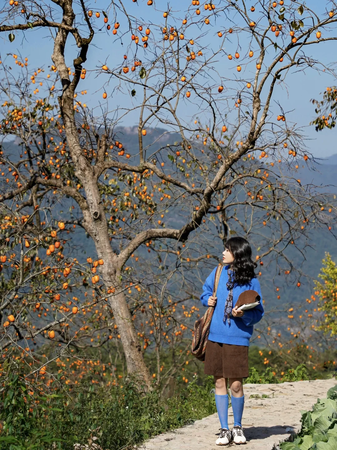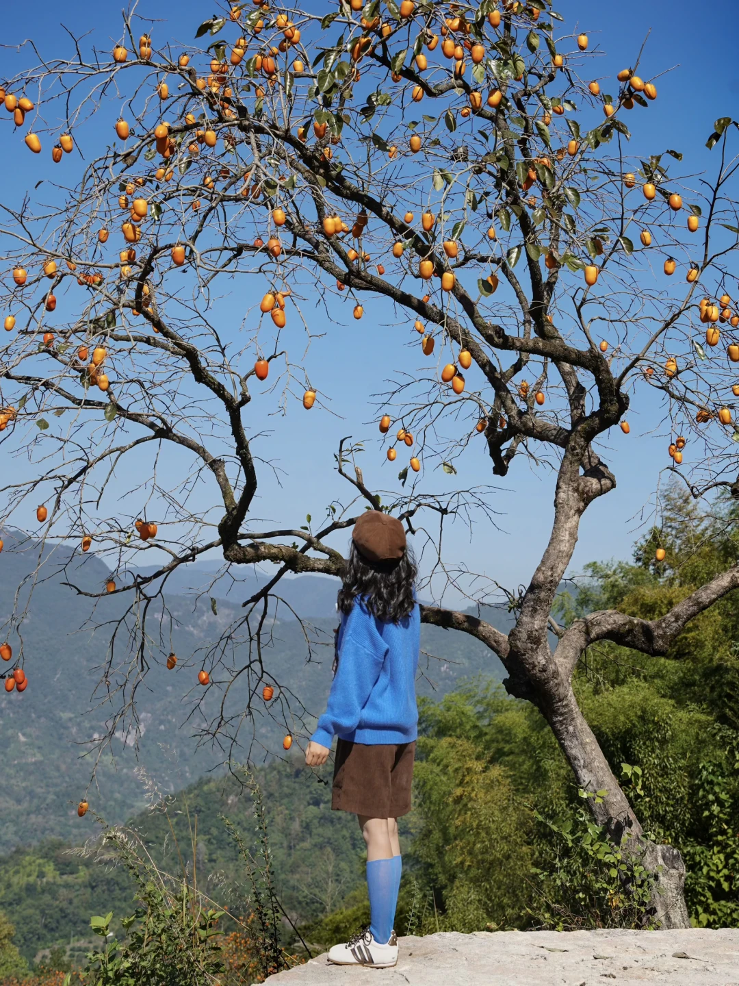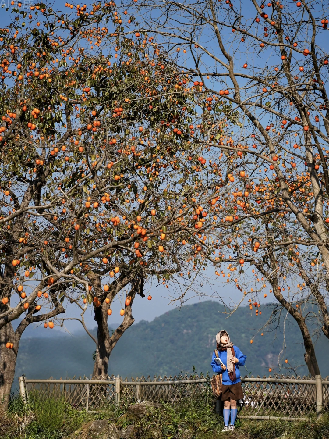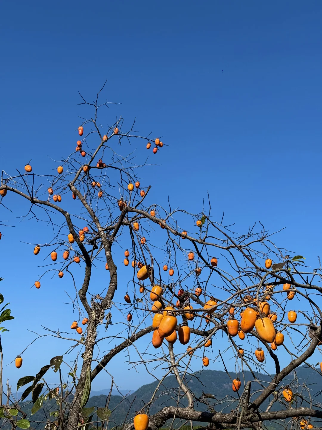 (这边柿子是长在梯田上的,颗颗果实饱满,一路走下去,会看见一棵又一棵的风骚,各有千秋)