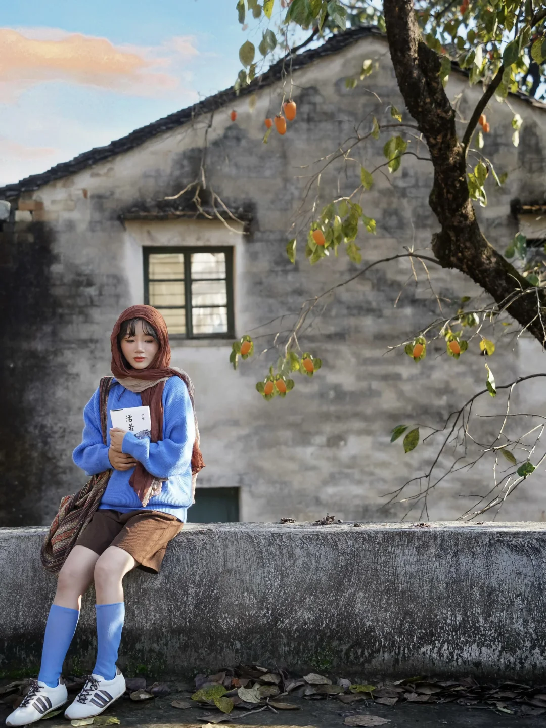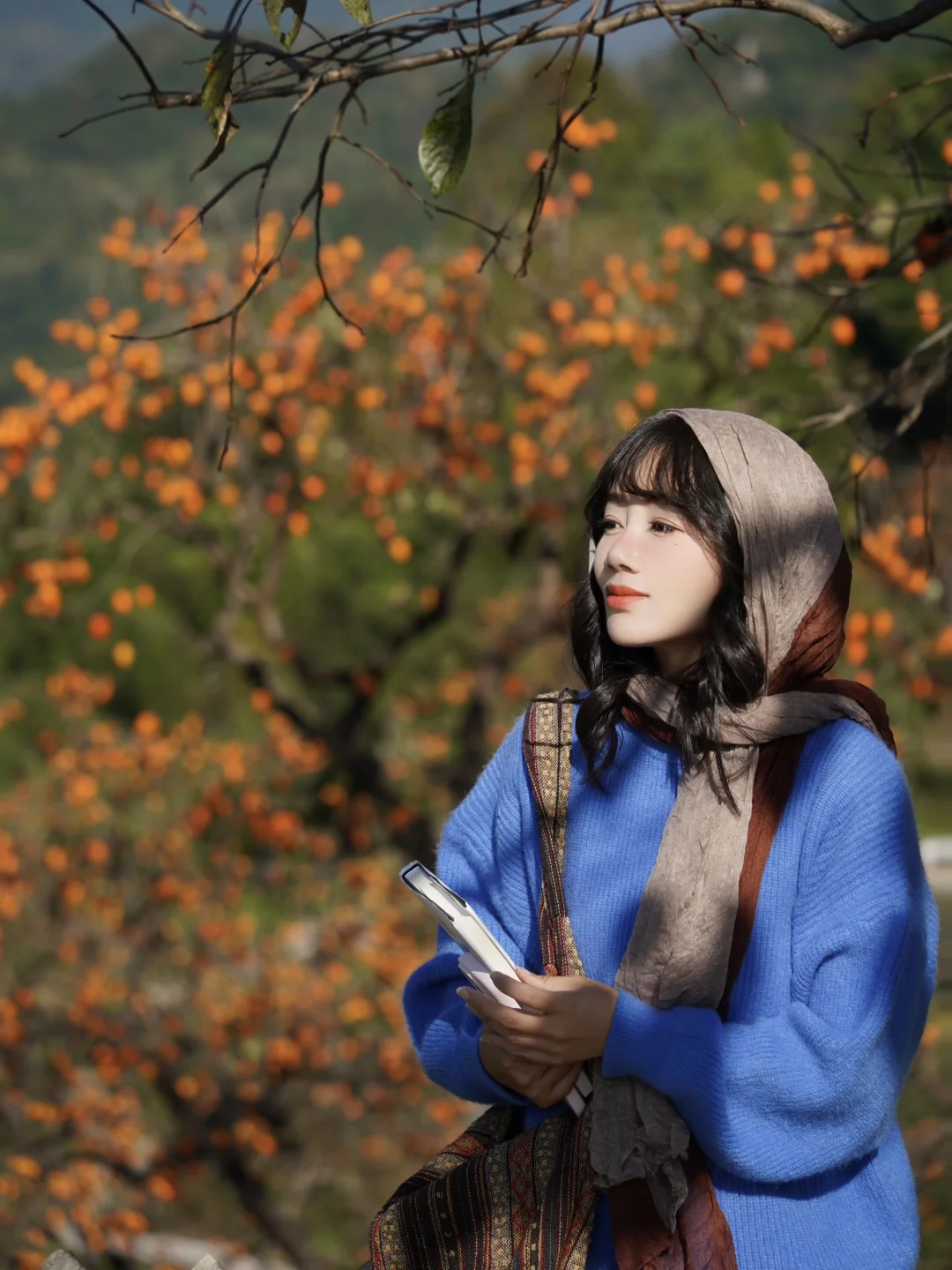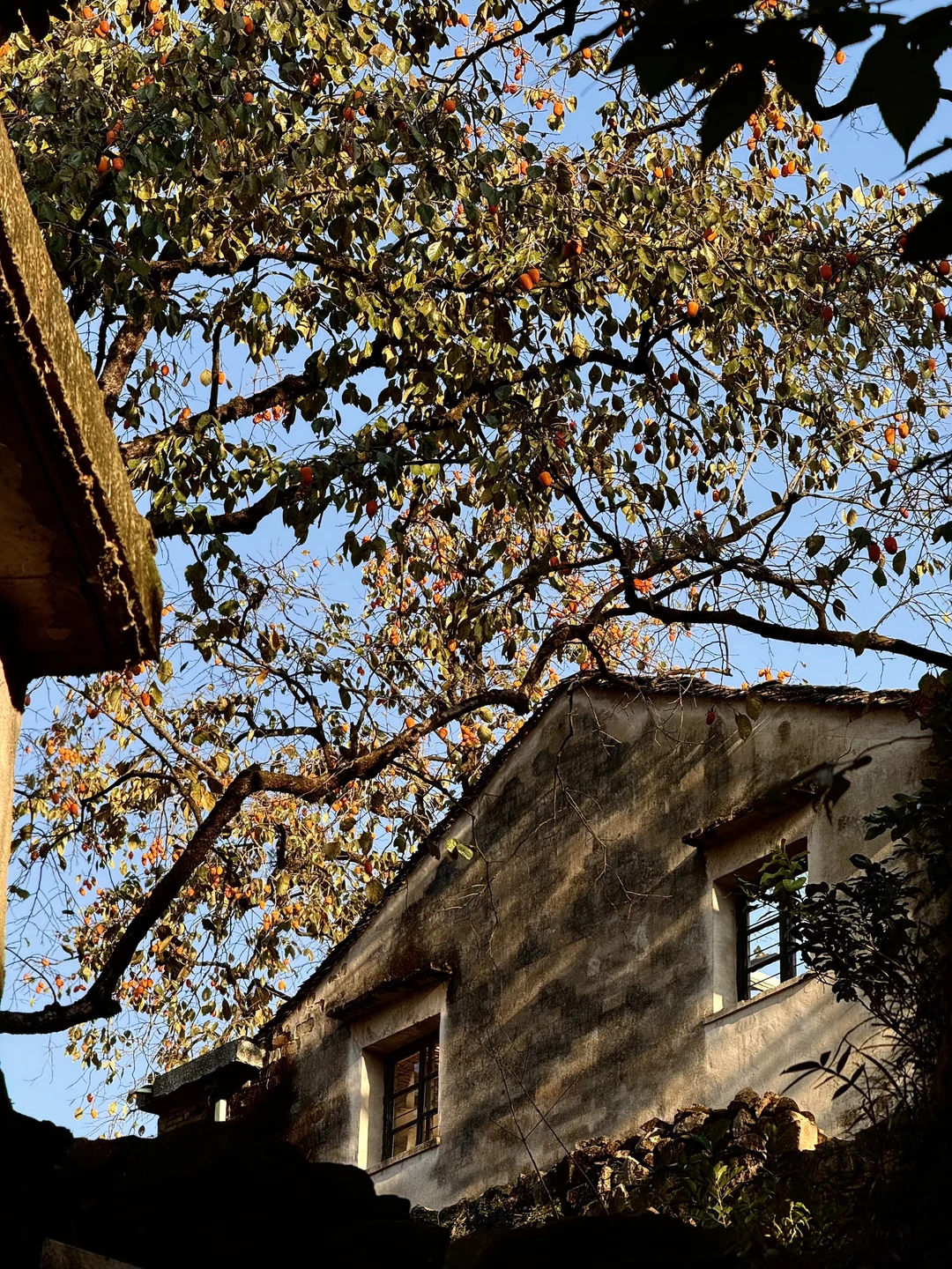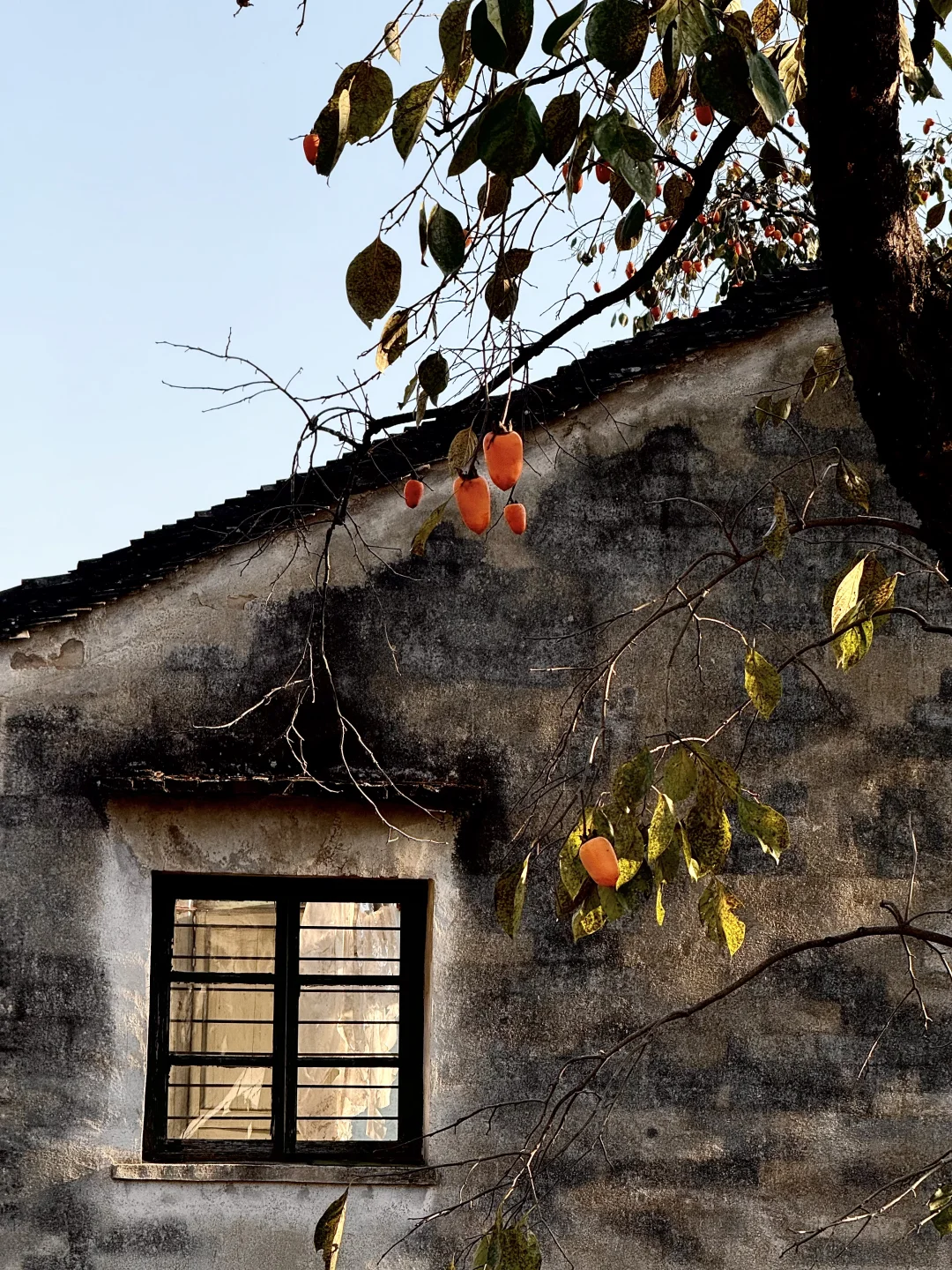 白墙黑瓦的老房子配上红彤彤的柿子、黄灿灿的叶子🍂