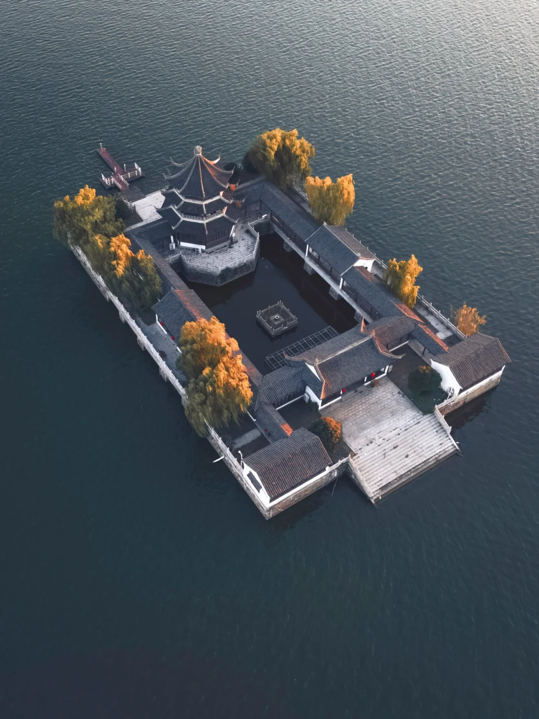 四面环水的天镜阁