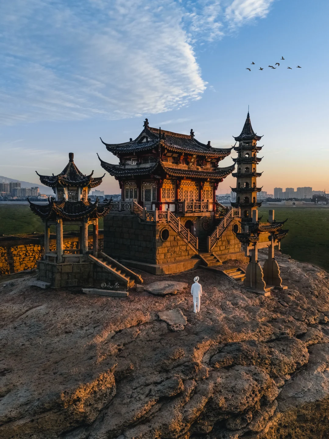 近处绿洲茫茫一片,不时还有候鸟飞过