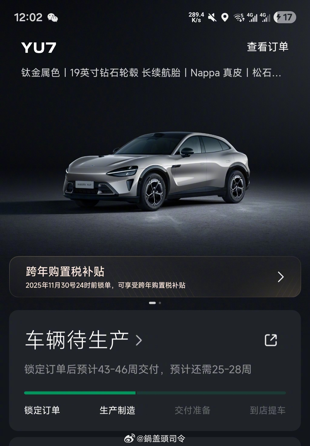我看了看我的,还要20多周,我感觉我都等了5个月左右了吧。当时SU7和YU7分别法定多少来?怎么还没轮到我。