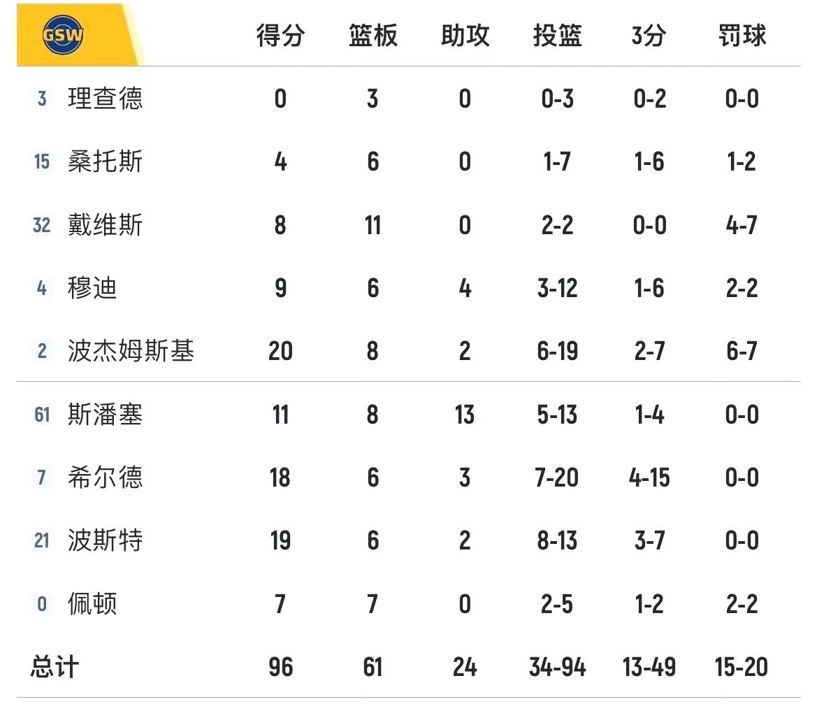 还是没有奇迹,勇士客场96-110不敌热火。第四节的热火吓死人……鲍威尔突然爆发,连得9分带领球队打了一波21-4。 快船是怎么放走鲍威尔的?巴特勒依然是那么傲慢…… 2025年3月25日:巴特勒赛后离开,没有和前队友打招呼。 2025年11月19日:巴特勒赛后再次离开,没有和前队友打招呼。