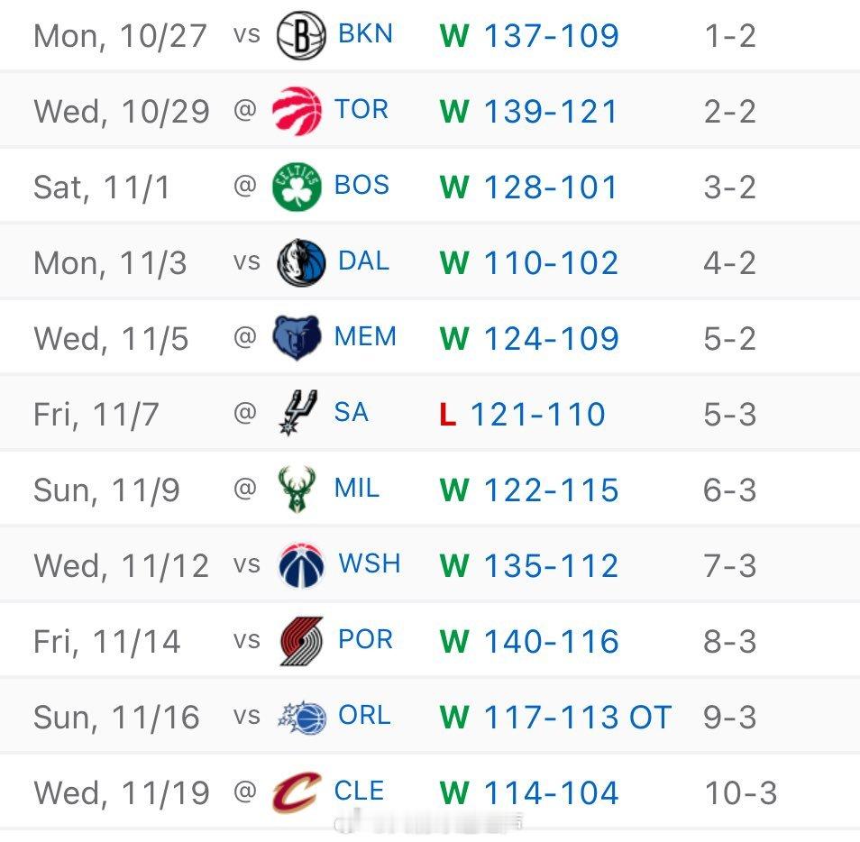 近11场10胜,场均净胜13.9分!