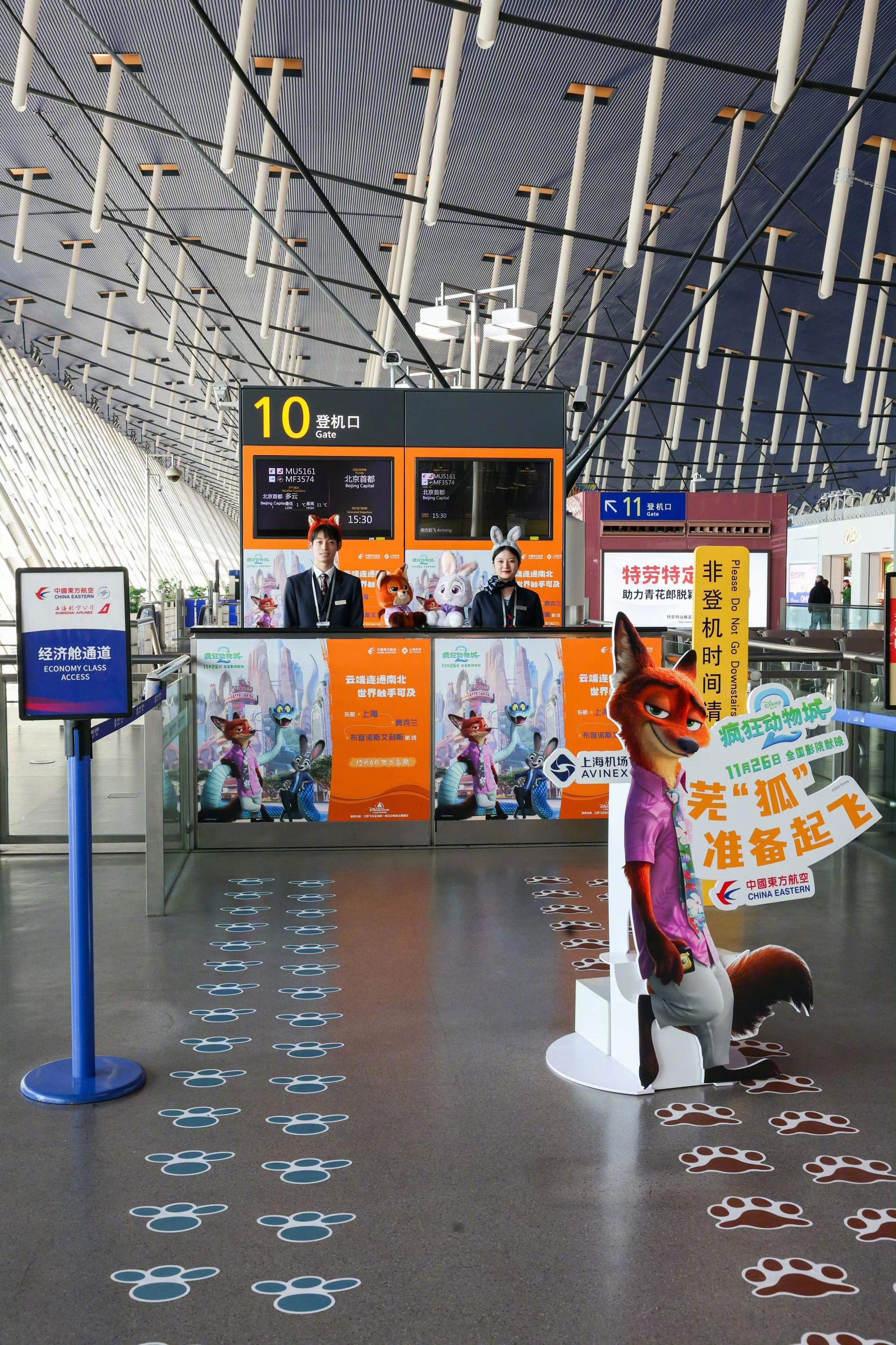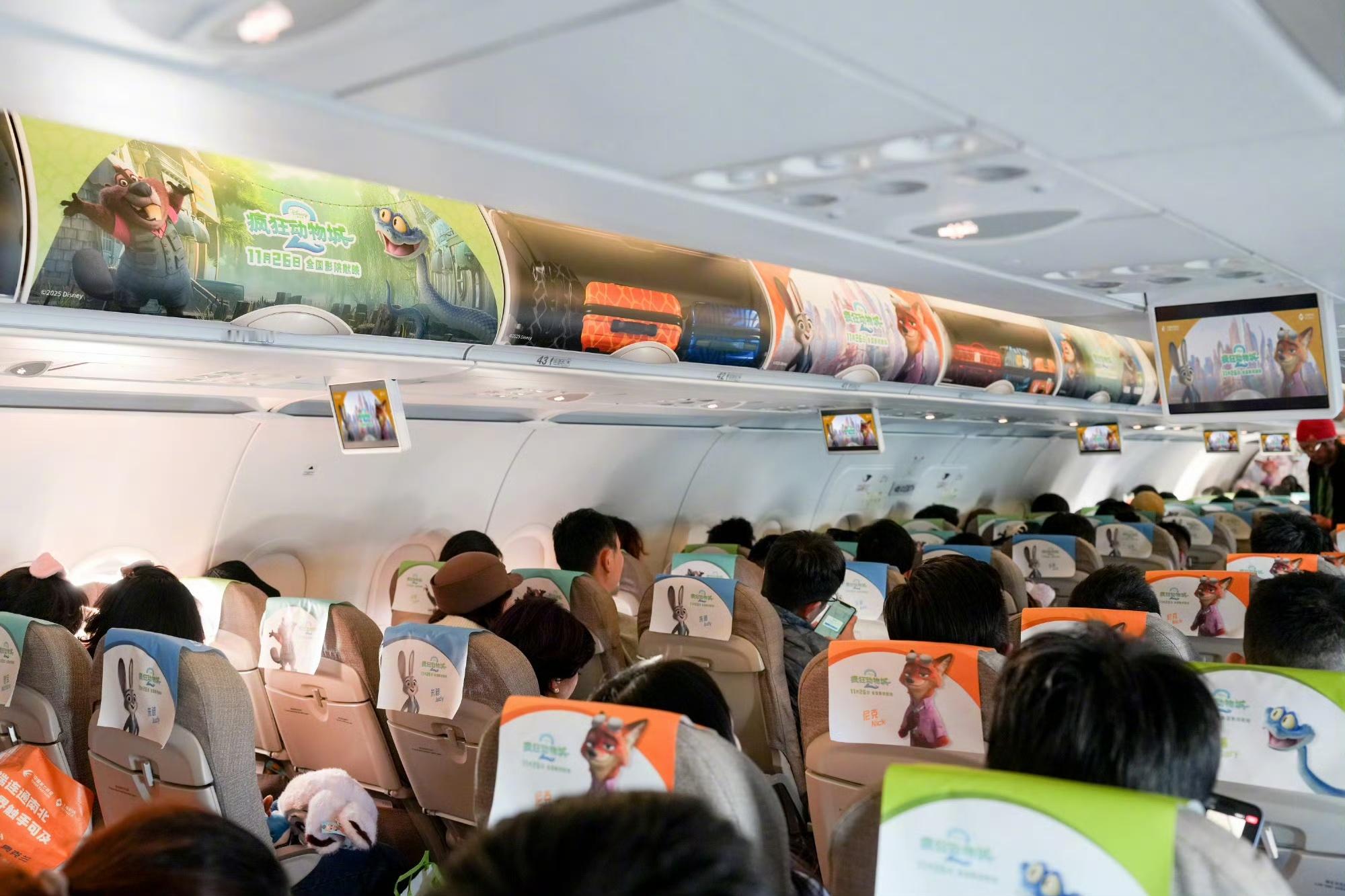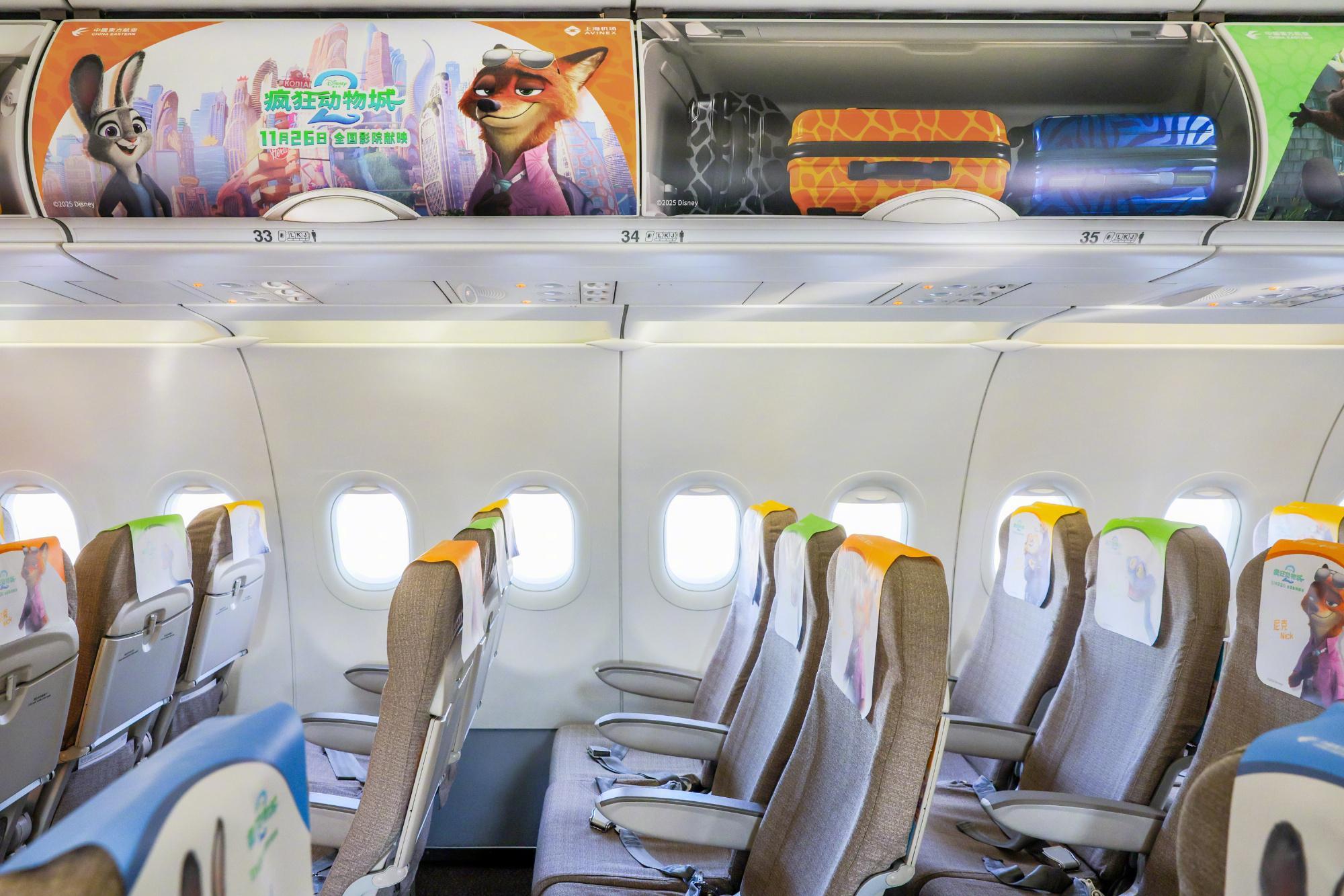 中国东方航空推出《疯狂动物城2》电影主题航班,机上内外充满彩色装饰,沉浸式体验动
