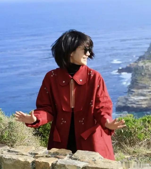 56岁“许晴”又去国外旅游!穿风衣+皮裤+短发,时髦洋气又减龄!!!!!!
