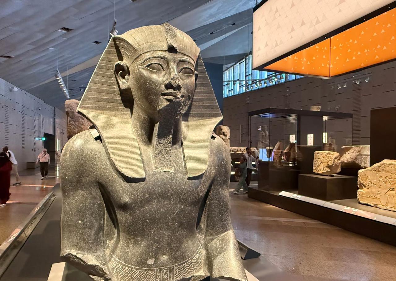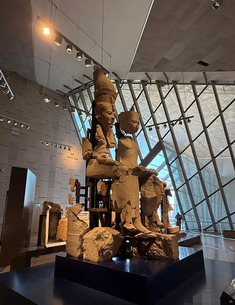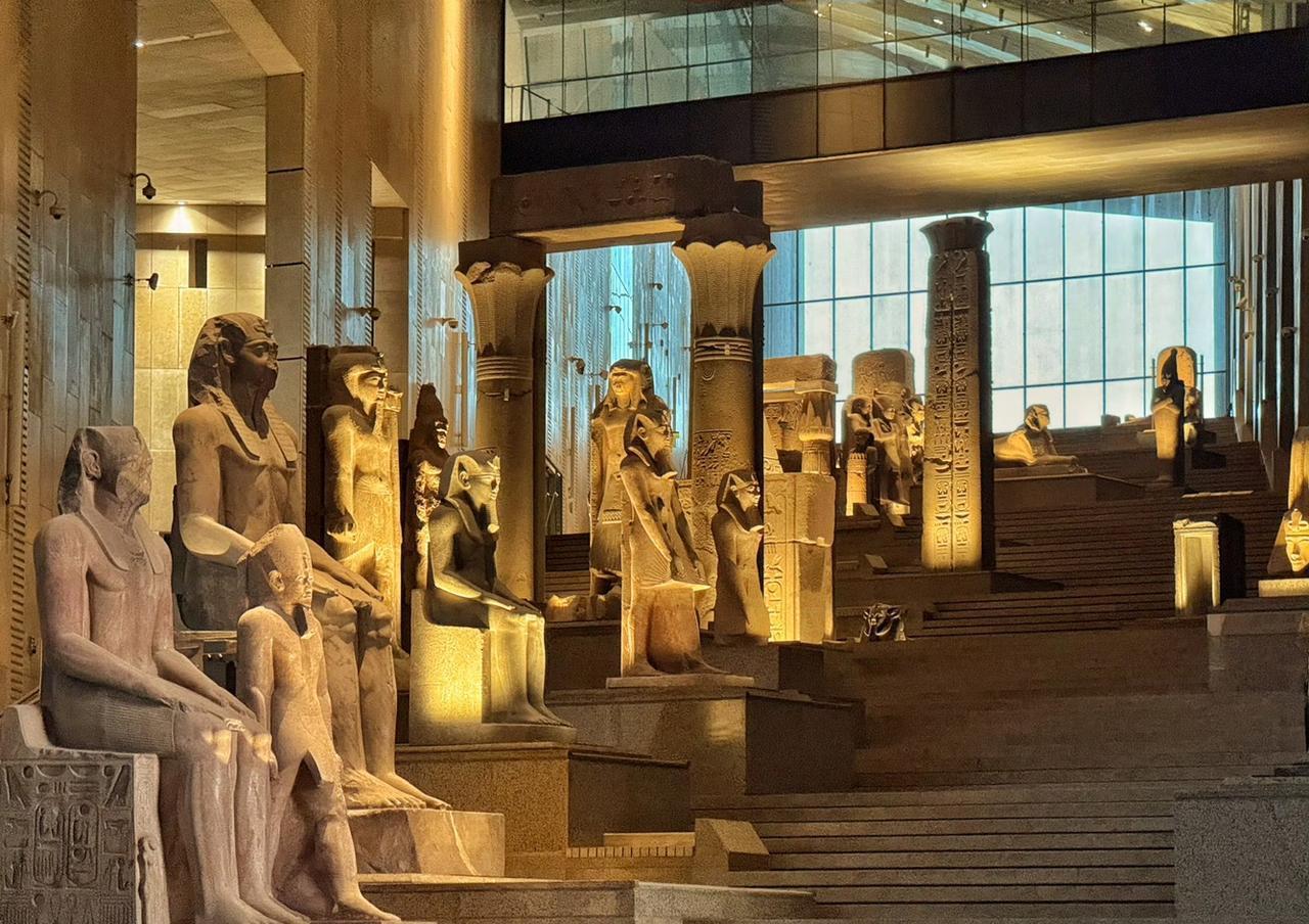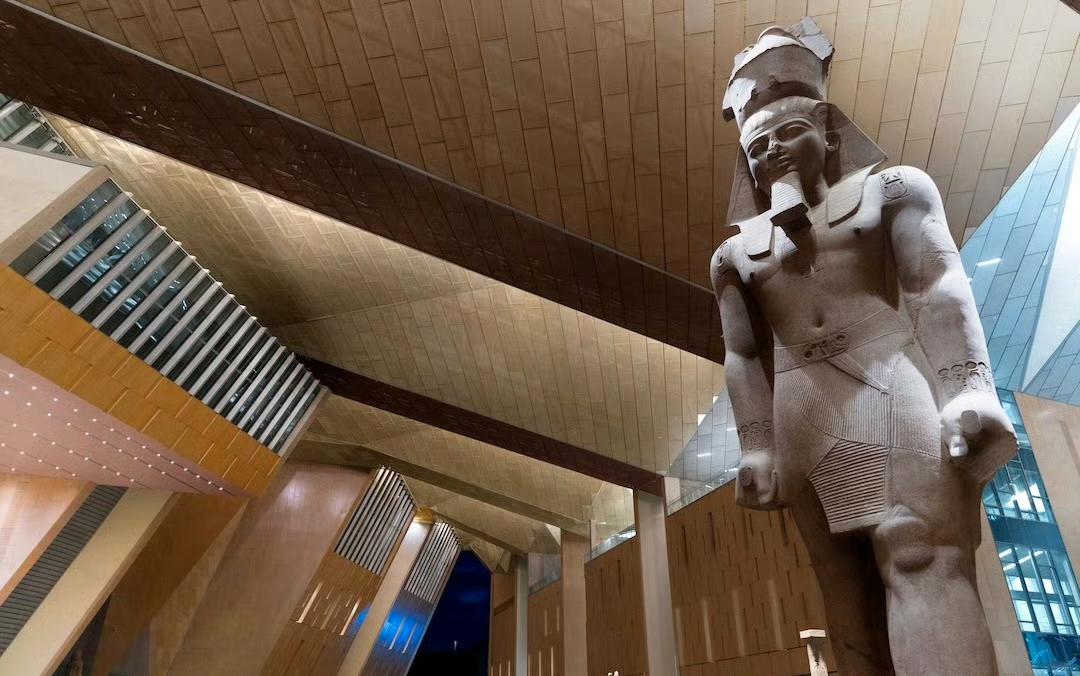 11月1日,埃及著名博物馆——大埃及博物馆在埃及首都开罗正式开馆啦!多国政要、王室成员和政府首脑都受邀出席。开馆仪式上,埃及总统塞西致辞,还为博物馆揭幕。 这座博物馆历经20多年建成,收藏超10万件文物。它建设斥资约10亿美元,占地约50万平方米,相当于70个足球场大。选址超棒,和吉萨金字塔群遥遥相望,在馆内透过玻璃幕墙就能看到金字塔。外立面大量用三角形元素,主入口是宏伟的金字塔形中厅,大厅还有约11米高的拉美西斯二世法老石像。埃及总理称它是送给全世界的礼物,真期待能去看看! 里面不仅有著名的拉美西斯二世法老还有收藏有著名的图坦卡蒙法老黄金面具,胡夫太阳船。