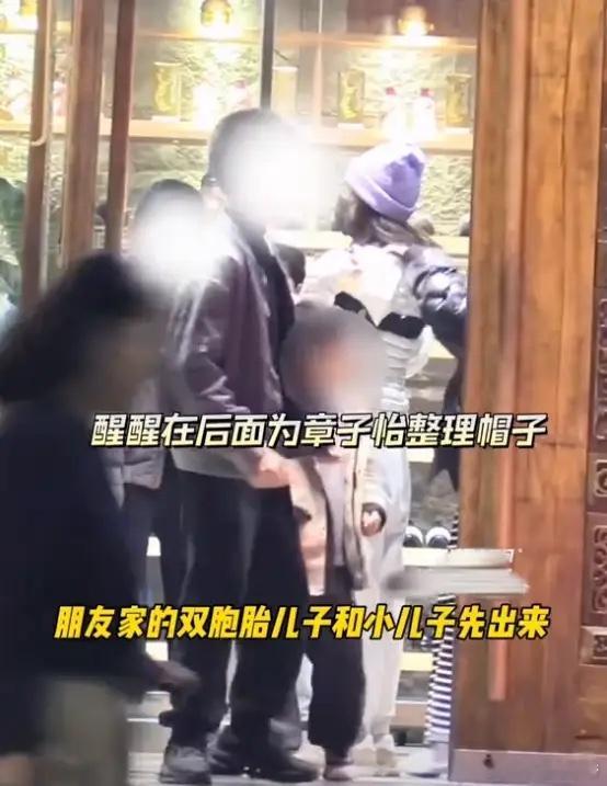 章子怡聚餐后走路姿势引热议,太像孕妇,醒醒贴心帮妈妈整理头发!