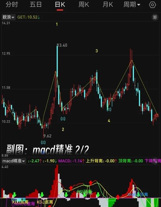 副图 macd精准 2/2 DRAWTEXT(B2,-0.6,'KDJ底离'),COLORYELLOW; A3:=BARSLAST(REF(CROSS("RSI.RSI1","RSI.RSI2"),1)); B3:=REF(C,A3+1)>C AND REF("RSI.RSI1",A3+1)0,-0.3,'RSI底离'),COLORCYAN; C1:=BARSLAST(REF(CROSS("MACD.DEA","MACD.DIF"),1)); D1:=REF(C,C1+1)"MACD.DIF" AND CROSS("MACD.DEA","MACD.DIF"); DRAWTEXT(D1>0,0.4,'MACD顶离'),COLORFFAA00; C2:=BARSLAST(REF(CROSS("KDJ.D","KDJ.K"),1)); D2:=REF(C,C2+1)"KDJ.K" AND CROSS("KDJ.D","KDJ.K"); DRAWTEXT(D2>0,0.6,'KDJ顶离'),COLORLIGRAY; C3:=BARSLAST(REF(CROSS("RSI.RSI2","RSI.RSI1"),1)); D3:=REF(C,C3+1)"RSI.RSI1" AND CROSS("RSI.RSI2","RSI.RSI1"); DRAWTEXT(D3>0,0.8,'RSI顶离'),COLORGREEN; DD:=C=HHV(C,180); EE:=DEAEA1 REF(C,1),1)=1; 上升背离:(CC AND EE)*DEAEA1,COLOR00FFFF; 顶背离:(DD AND EE AND DEAEA1 REF(DEAEA1,1) AND REF(DEAEA1> REF(DEAEA1,1),1)=1; LL:=C< REF(C,1) AND REF(C LLV(DEAEA1,180))*DEAEA1,STICK,LINETHICK3,COLORRED;
