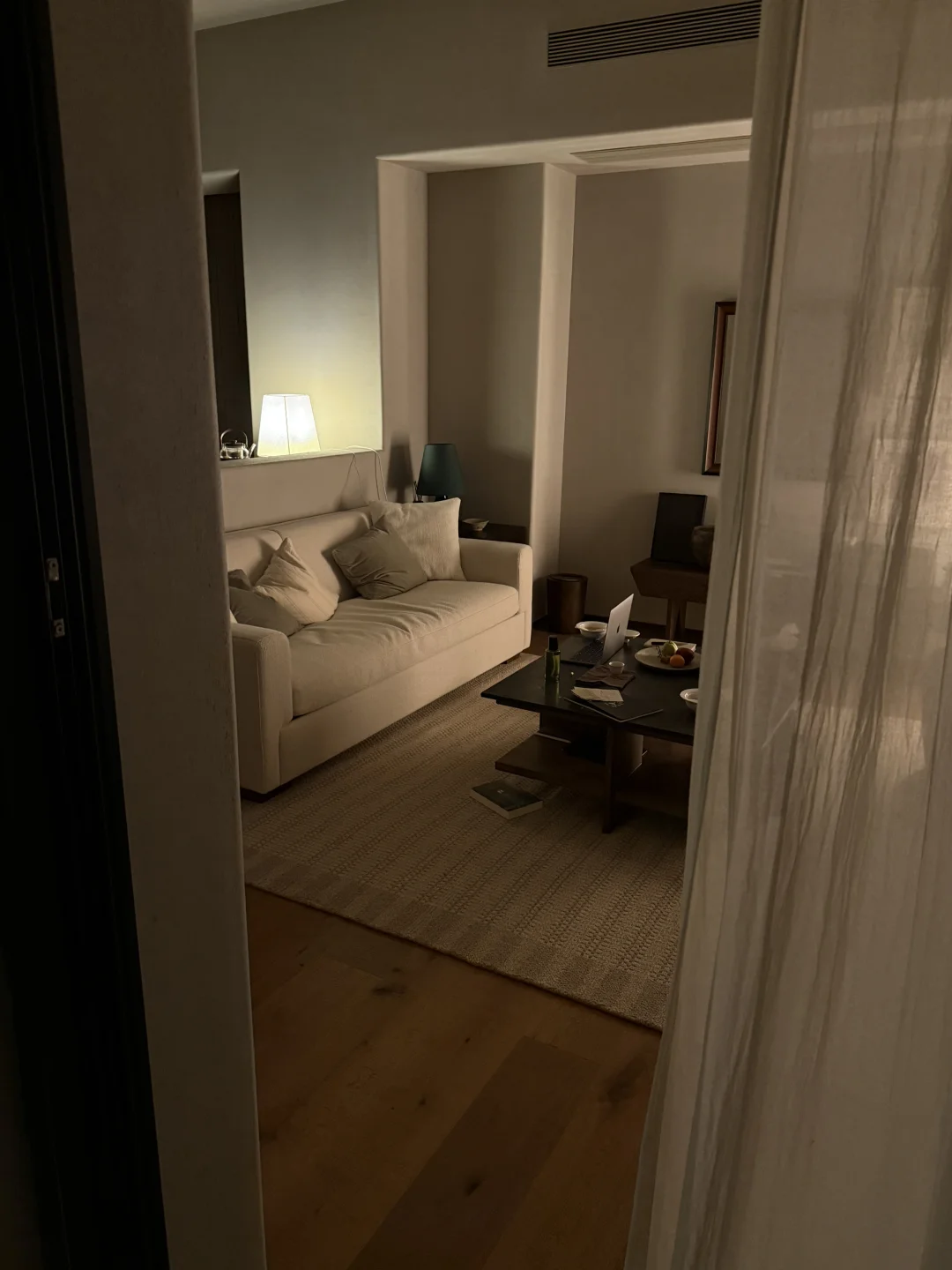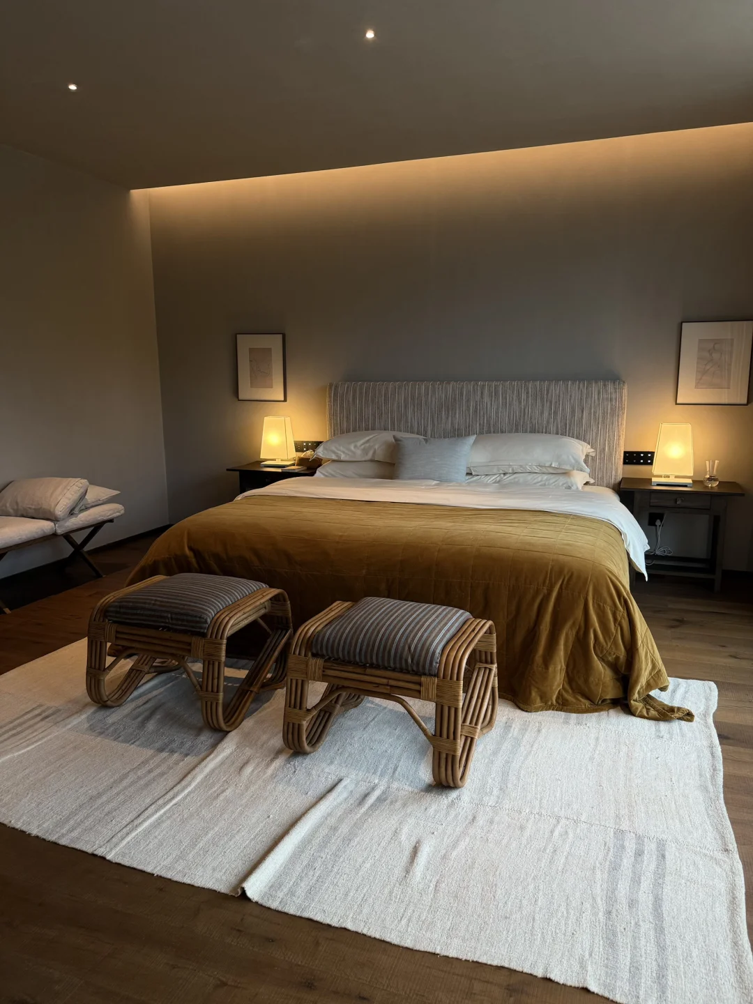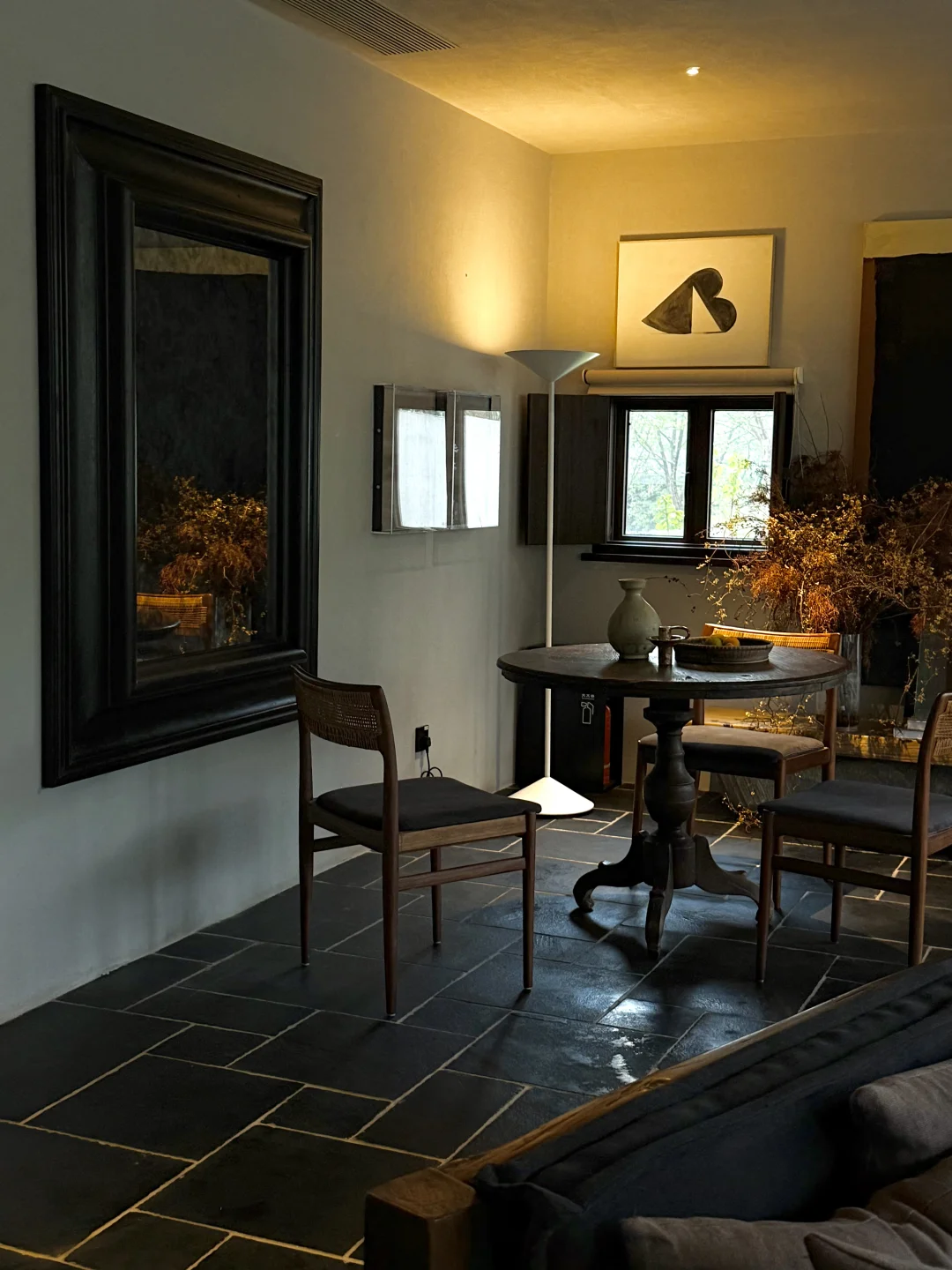 小众度假~逃离城市了两天 回来逢⼈必夸! 质感侘寂⻛ 可以永远相信谢柯的设计 公区布局很惊艳!房间温暖舒适 还有客厅 武汉⻋程1⼩时 整个民宿安静舒服 ⼼完全静下来了 下午喝喝咖啡 有手工活动能参加 很适合一家人来 旁边有⼀个类似艺术园区 可以逛有画展~ 我的5号房有个露台 晚上⼯作⼀会 在露台上听蝉鸣 跟家属聊天 全是泥⼟ ⾬⽔的⽓味 屋里音乐放着 简直五感洗礼!! 啊啊啊不开⼼就进⼭吧⛰️