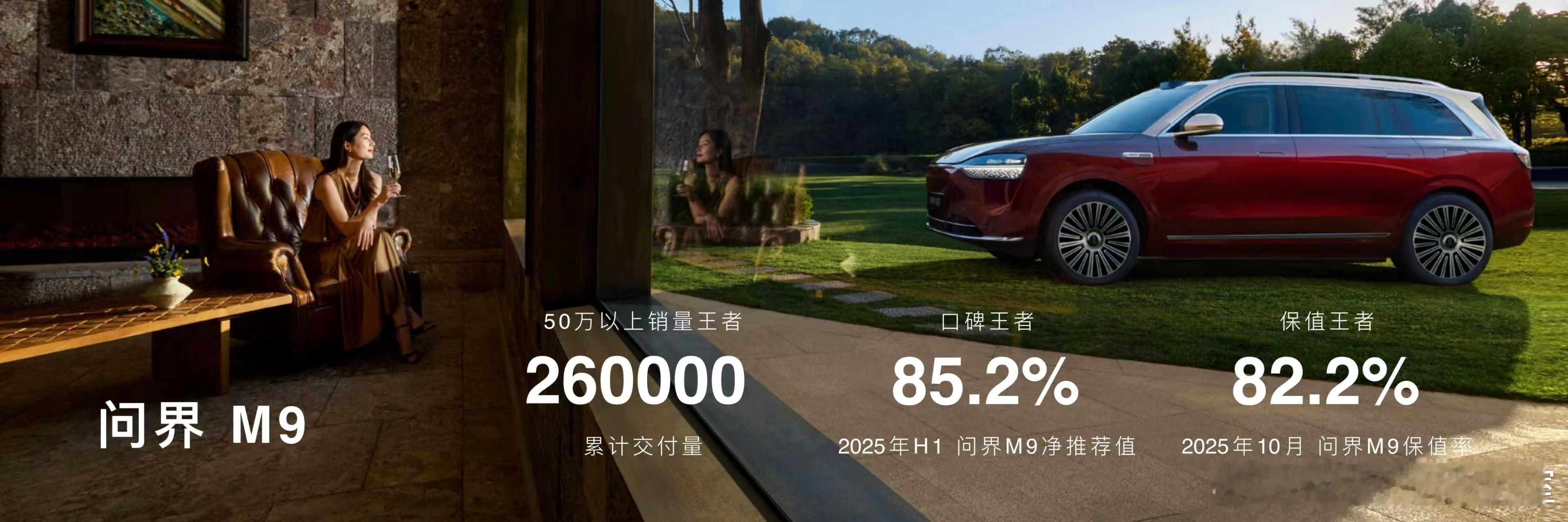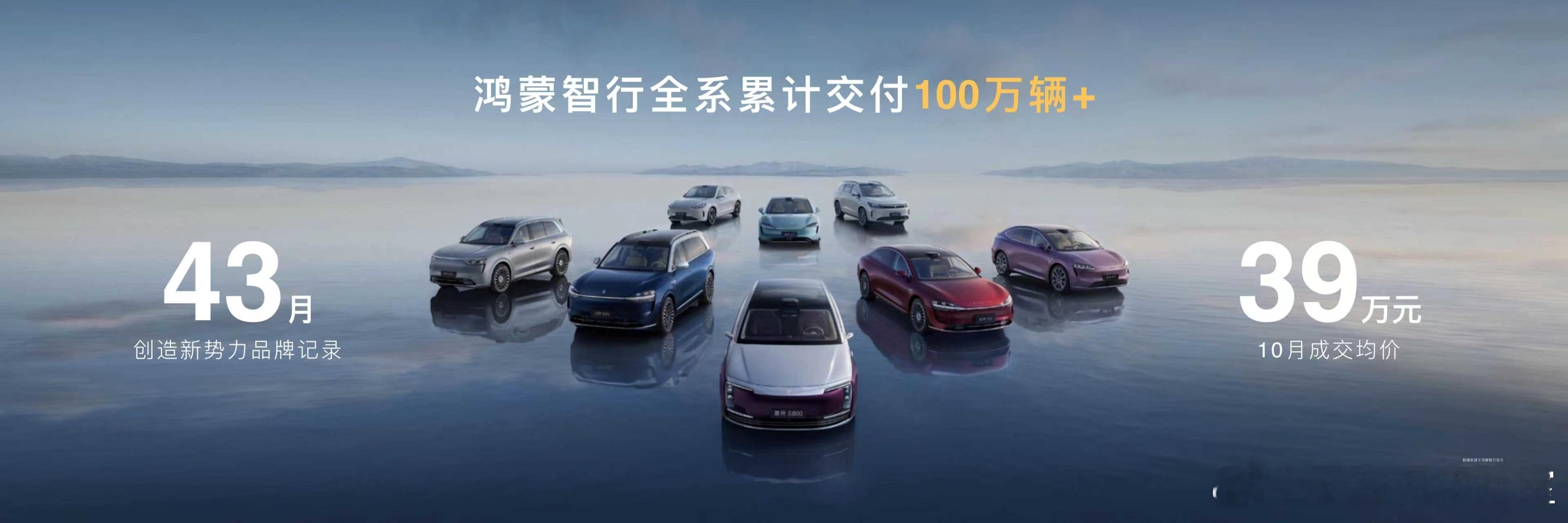 鸿蒙智行全系产品,43个月累计交付突破100万台,创造新势力品牌百万交付最快纪录。其中尊界S800上市175天,大定突破18000台,问界M9累计交付260000台,成为50万以上的销量第一。