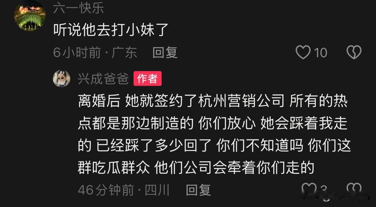 小二娃怎么可能去打小妹儿呢? 小二娃没有和小妹儿离婚的时候对她也很好,难道能假装爱她吗? 因为闹离婚,吵架,把感情整淡了。 离婚了小妹儿现在真的是干点什么事都像小二娃说的,踩着小二娃一路前行。 小妹儿开了一个公司,看样子是要大展身手。 小妹儿放出几个字:停更几天。就把矛盾引到了小二娃身上来,小二娃是躺着睡着走着跑着也躲不过小妹儿这边的流言蜚语[笑哭]。 姐妹们就那么心疼小妹儿,纷纷去责备小二娃。胡说八道一天天。[我想静静] 小二娃就是石头做的也要动一动嘴巴说两句了。 小妹儿的新公司开业那天, 有可能小二娃肯定也会上热搜[我想静静][我想静静]。 小二娃想过清醒清静的日子很难很难。 再难日子也要走,小二娃要咬紧牙关了。 小妹公开谈离婚 小二娃婚变