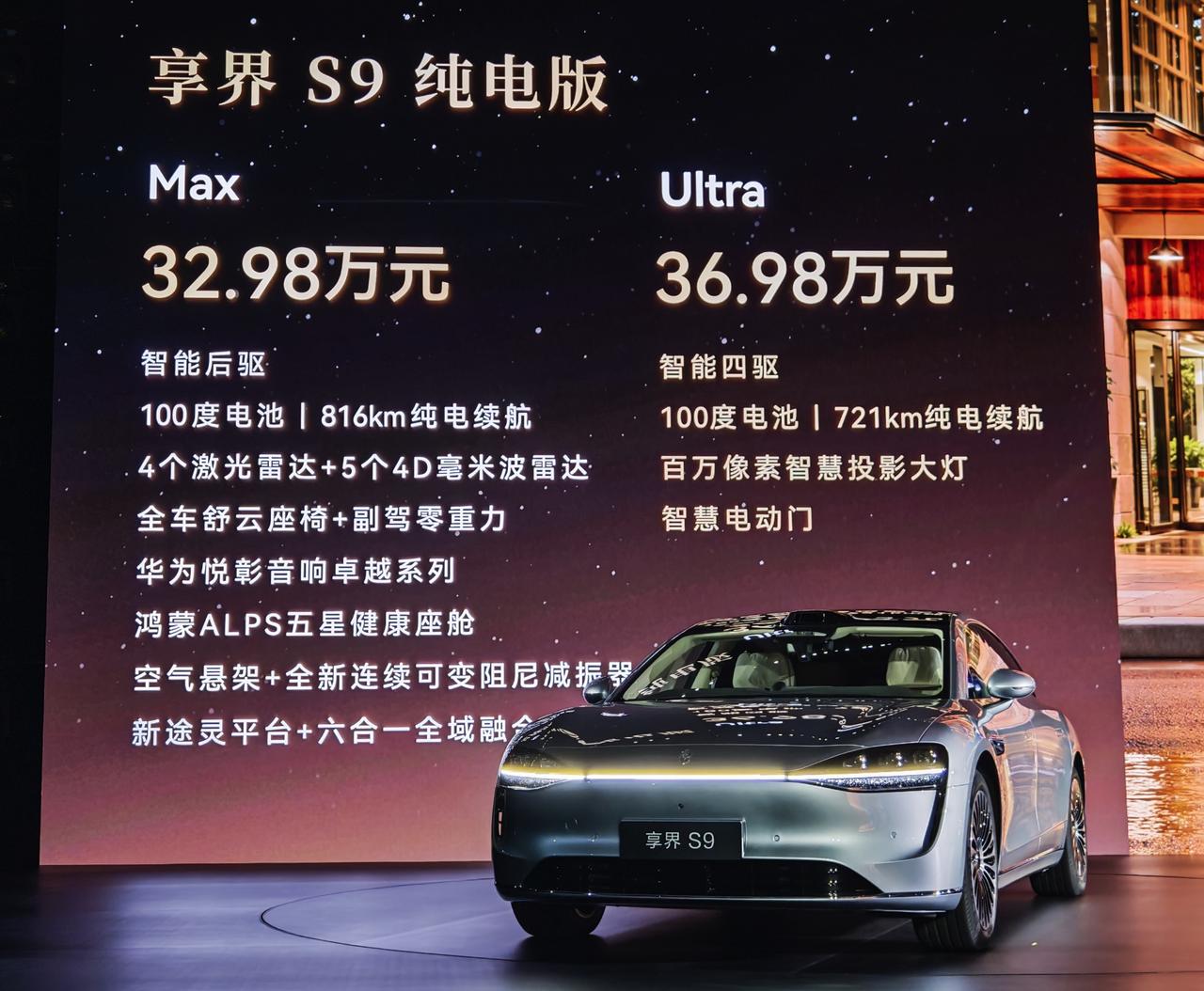 2024年8月6日,华为发布享界S9 享界S9 MAX后驱:39.98万元 享界S9 Ultra四驱:44.98万元 2025年11月20日,华为发布享界S9新款 享界S9增程版:Max版售价30.98万;Ultra版售价34.98万 享界S9纯电版:Max版售价32.98万;Ultra版售价36.98万