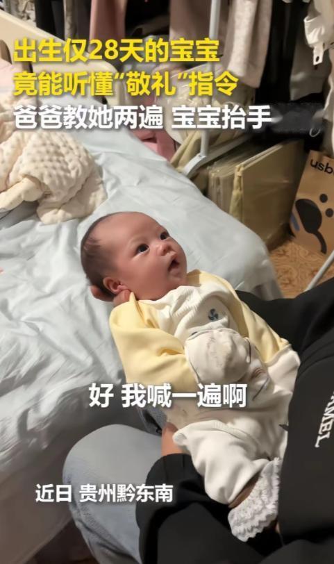 “科学解释不了!连人民日报都转发了!”贵州黔东南,出生仅仅 28 天的宝宝,竟然能听懂“敬礼”指令!网友: 有没有一种可能,曾经那些英雄已经陆续回来了! 贵州黔东南,一个新生小宝宝刚满28天,家里人高兴地逗他玩。爸爸突然来了句“敬礼”,只见小家伙眨着还没睁开的眼睛,慢悠悠地举起小手,模仿着敬礼的动作。 爸爸又教了一遍,结果宝宝再来一次,动作还更标准了。别说家里人,连网友看了都忍不住倒吸一口凉气。 要知道,正常来说,新生儿这个阶段,别说敬礼了,连抬头都困难。很多家长都知道,刚出生的宝宝,除了吃奶就是睡觉,手脚乱动都是本能反应。 可这小宝贝偏偏能听懂指令,还认真地敬礼,怎么看怎么像是“有点东西”。所以,大家才会觉得,这不是一般的巧合。 视频一传开,评论区里满满都是祝福和赞叹,还有不少人感慨:这是不是老天在给我们送什么信号? 这次连人民日报都跟着转发点赞。这一来,事情立马成了大新闻。人民日报的转发,不光是对小宝宝的鼓励,更像是对中国人精神的一种肯定。 网友们的评论也是五花八门,有的说“这孩子前世肯定是个军人”,有的说“是不是咱中国的英雄们轮回回来了”,还有人直接感慨“希望新一代的娃娃都这么有精气神”。 其实,这样的讨论,未必真就信了“前世今生”,更多的是一种敬意和向往。毕竟,咱中国一直都敬重英雄。 每当看到这样的娃娃,大家心里总会升腾起一种“希望”的感觉,觉得这个国家未来可期。其实,大家会为一个小宝宝敬礼而感动,背后是因为那份对“敬礼”背后精神的敬仰。 咱中国人,尤其是50岁左右的老一辈,对敬礼这个动作有着天然的亲切和敬重。看八一电影的时候,看老兵敬礼,总觉得那是最庄重的时刻。 哪怕后来生活再苦再难,只要一看到有人敬礼,心里总会泛起一股热流。那是因为,敬礼代表着责任、担当、舍己为人,是咱中国人最质朴的信仰。 所以,这样一个小宝宝,哪怕只是下意识的动作,也能牵动无数人的情感。大家愿意相信,英雄精神不会消失,只是换了一个方式继续传承。 那些为国家付出的英雄,或许真的以另一种方式,陪着我们守护这个家。有时候,咱中国人特别能被这样的小事情打动。 一个简单的敬礼动作,背后是千千万万家庭的希望和寄托。尤其是很多当过兵、或者家里有军人长辈的家庭,看到宝宝敬礼,心里头那份自豪感油然而生。 很多人觉得英雄离我们很远,敬礼只是仪式。可现实生活中,一代代人用行动,默默守护着咱中国的每一寸土地。正是这种精神,才让这个国家始终充满希望。 有网友说得直接:“也许这孩子真的带着前辈的灵魂来到人间,要继续完成守护祖国的使命。”虽然听起来有点玄乎,但也正是这种说法,让大家的心更近了。 其实,咱中国历史上,从来不缺英雄。无论是抗战老兵,还是新时代的消防员、警察、医生,每当国家和人民需要,总有无数人挺身而出。 哪怕没有留下名字,他们的精神也一直流淌在咱中国的大地上。这次小宝宝的敬礼,正好又让大家回忆起那些平凡又伟大的身影。 有人说:“不仅仅是敬礼,更像是对所有英雄的一次集体致敬。”这话一点不假。因为只有精神代代相传,这个国家才会越来越强大。 这次小宝宝敬礼,无论是巧合还是“英雄归来”,都带给了大家满满的正能量。人民日报的点赞,更像是给全国人民的一次“精神加油”。 生活本就不易,能被温暖和激励包围,何尝不是人生一大幸事?有人说,这一代孩子,比我们当年更幸福,也更有责任。 以前咱们小时候,能吃饱穿暖就不错了。现在的孩子,生下来就被各种爱包围着,家长们最大的愿望,就是孩子健康成长。 但与此同时,社会也希望新一代能继承老一辈的精神,不怕苦、不怕累,遇事敢担当。就像这次敬礼的小宝宝,哪怕动作还不标准,背后藏着的,是千万个家庭对“英雄精神”的向往。 每一个新生儿,都是这个国家的明天。正是他们的成长,让咱中国的希望一代代延续下去。网友那句玩笑话: “说不定英雄真的回来了”,其实是对未来的美好祝愿,也是一种自信的表达。说到底,不管科学能不能解释,这个小宝宝的敬礼,已经感动了无数人。 它不仅仅是一个姿势,更是一种信仰,一种力量,一种希望。每一个小生命的诞生,都是咱中国大家庭的新希望。 哪怕只是一个看似巧合的敬礼动作,也能激起千层浪。因为在这个伟大的国度里,总有人用实际行动,书写着属于自己的英雄故事。 希望未来的日子,有更多这样的温暖瞬间,提醒我们别忘了初心,也别丢了信仰。愿咱中国的每一个孩子,都能健康成长,勇敢担当,把英雄的精神一直传下去。 这,才是对这个时代最美的敬礼! 参考资料: 《出生仅28天的宝宝,竟能听懂“敬礼”指令。爸爸教她两遍,宝宝抬手就做......》——临沭融媒