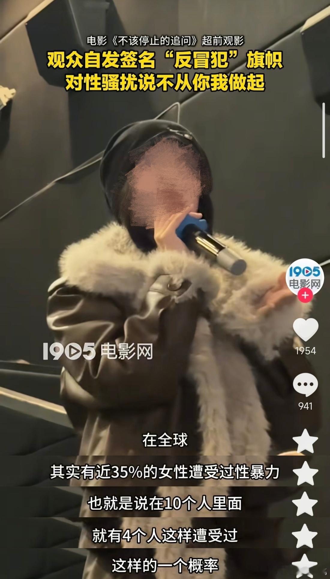 在电影《不该停止的追问》超前观影现场有位女观众声称“在全球有近35%的女性遭受过