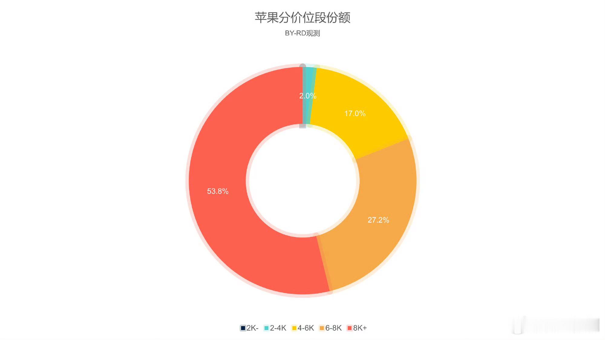 苹果这个价位分段真的太夸张了,8000+超过50%。