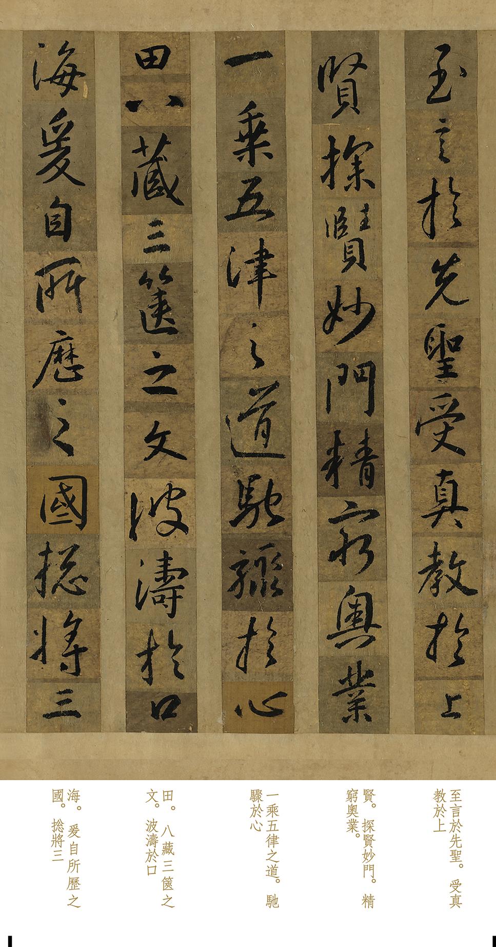 失传千年的《圣教序》真迹,重现台北故宫!全卷一字未损,书法史或将改写 学习书法,最绕不开的一部法帖,必然是《圣教序》,众所周知,王羲之笔法乃是书法根基和精髓,后世的虞世南、张旭、欧阳询、苏轼和米芾等人,均由此发迹,学会它,就是掌握整个书法史。 但是王羲之的真迹罕见,且内容简短,不够系统化,再加上笔法秘传,极少有人得真传,幸好初唐时期,唐太宗痴迷“王书”,当年玄奘西行归京,为了纪念这一伟大事迹,特意作序赞扬。 怀仁迎合帝王喜好,采用王羲之的字迹,集成全文,故称《集王圣教序》,据说他带领几十人,耗费20多年才完成,可见精细程度,把王羲之最纯正、最精湛的笔法,体系性展现出来,完美解决上述问题。 然而《圣教序》制成之后,就摹刻上石,墨稿消失不见,当今市面的拓本种类虽多,但是水平不足,要么漫漶严重,字迹缺损,没有细节,要么专家科技修复,笔画过于匀和、标致,丧失气韵和真实感。 就在众人倍感遗憾之时,台北故宫博物院近期,展出失传千年的《圣教序》真迹,通过图片便可看出,这是怀素把王羲之字迹,从其原帖裁剪之后,重新拼凑一起的真实墨稿。 因保存完善,全卷一字未损,十分清晰,笔画绰约俊逸、遒逸俊美,前后章法排布自然,笔势呼应语序,衔接紧密、畅达,真正还原王羲之的笔法,不夸张的说,其价值和重要性,足以改写书法史。 此帖展出之后,也遭到一定怀疑,认为它是假的,首先这是台北故宫的珍贵藏品,编号为K2B000383N000000000PAF,其次苏轼卷尾题跋曰:“以一金钱购王羲之一字。命怀仁汇集成文。藏之天府。其勒石行世者。则怀仁临摹笔也。” 正如苏轼题跋所言,还有人觉得,这并非王羲之原稿,赵孟頫的徒弟虞集,也在卷尾提到:“其勒石行世者。则怀仁临摹笔也”,他认为这不是王羲之真迹所集,而是怀仁的摹本。 其实无论是怀仁所写,还是真正原稿,这都是罕见的墨稿,字字生动润丽,笔法精到,充分还原魏晋技巧和风韵,非常值得临摹,学习正统、体系的古法,夯实基础,日后临摹其他的晋唐拓本,也会更加顺利。 而今,我们对《墨迹圣教序》,进行1:1超高清复刻,推出便携经折装,非常适合临摹与欣赏,与原作毫无二致,见此品如见原作,市面独此一家,若您喜欢可点击下方商品链接一观。 作品为我店独家版权,侵权抄袭者必究! 怀仁集王圣教序 墨迹本 带全部题跋和译文 经折装高清1:1复制书法