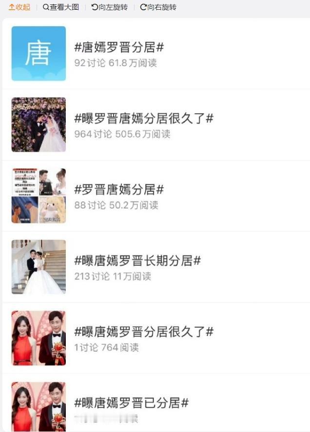 唐嫣罗晋上热搜第一了 有瓜主爆料内娱著名恩爱夫妻已离婚,好多人都在猜是他俩,据爆料,他俩分居一年多了,孩子一直是唐嫣在带,他们两人也好几年没有公开同框,甚至私下同框被拍到了,他们俩早期合作了四五部剧,据早期娱乐新闻爆料,他俩中间分分合合好几年,最后还是结婚了,虽然上了热一,但是双方还未回应。