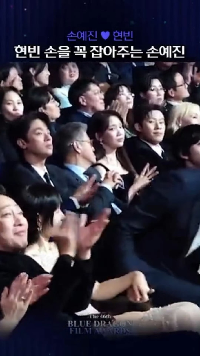 玄彬孙艺珍台下牵手,真夫妻就是甜,台下拉小手就这么自然的亲密~