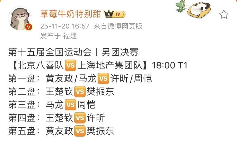王楚钦将再从和樊振东交手,输过赢过哦,但从来没怂过。 男团团体决赛18点开始, 北京队的一单是王楚钦,上海队一单是樊振东, 两个人单打比赛之后, 这是第二次在全运会相遇。 王楚钦单打输给了樊振东, 今天没有什么包袱,放开了打就好, 本身樊振东也是大满贯,实力很强, 王楚钦他自己也是学习的心态去拼,毫无压力。 今天晚上会是很精彩的比赛, 一起期待。