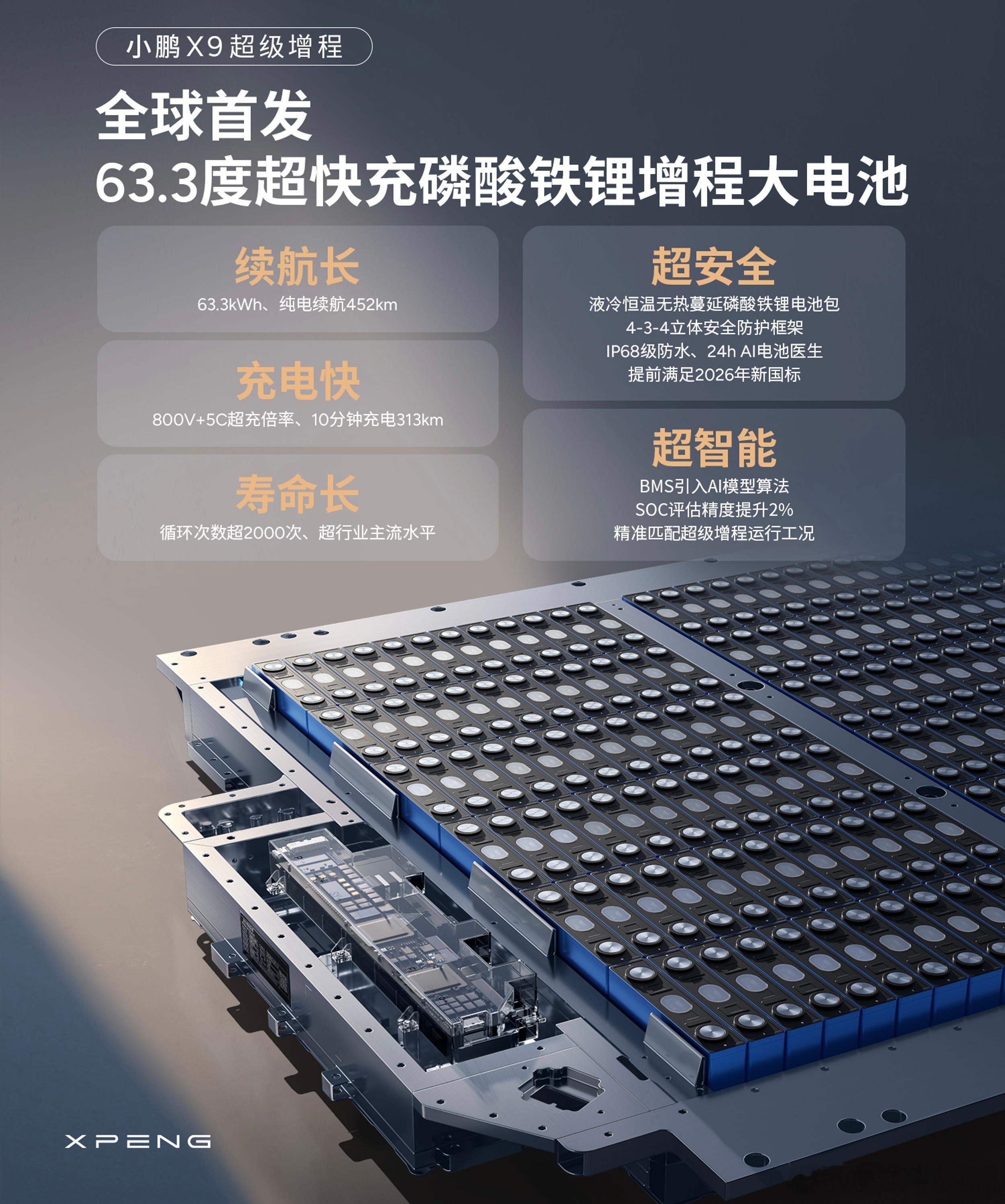 小鹏X9续航突破1600km,确实算业界一个突破:纯电CLTC标准下走到452km,我个人理解啊:90%场景就把它当电车来开,增程器反而变成了一个备案。先纯电动+再发电机,小鹏“超级增程”可以说把传统增程的硬件优先级换了个位。1、纯电续航变长。现在冬天电池不耐受啊,452km即便有折损,打8折后日常一周上下班路程不充电也没问题。但传统增程真得每天插枪。2、63.3度电池+5C超充。目前市面上的增程车找不到下手这么狠的。公共充电桩全部客满的情况下大家各自“抢电”能力的比拼就浮上台面了。3、60L油箱非常夸张。绿牌车的油箱甚至比一些汽油车的油箱都要大,中大MPV霸气侧漏此刻具像化了。老板也好奶爸也罢,MPV玩的就是一个云淡风轻游刃有余。小鹏X9“超级增程”也是给自家技术秀了一把肌肉。你有被炫到么?