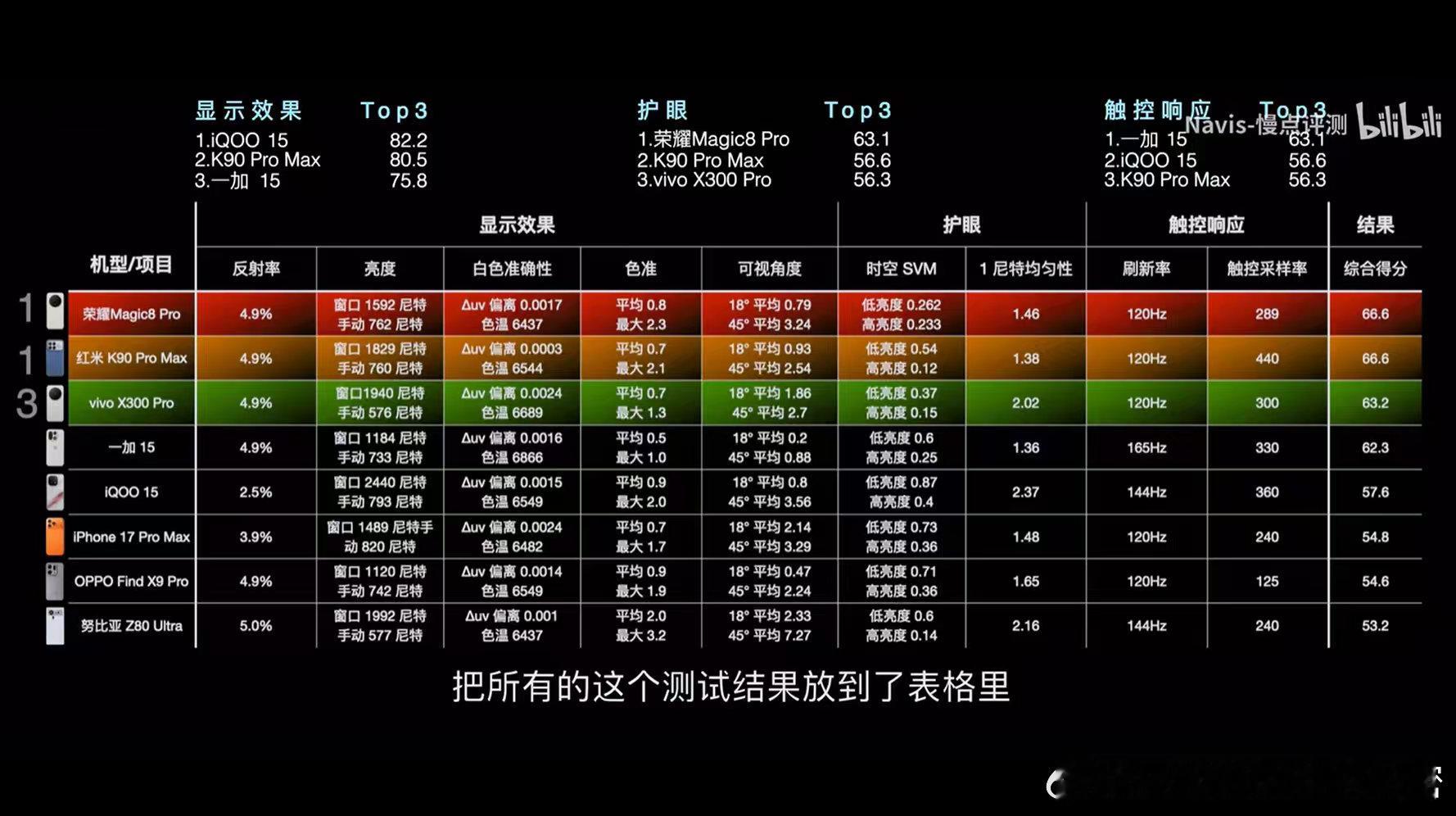 Navis慢点评测屏幕横屏,Magic8 Pro屏幕护眼第一,综合第一。