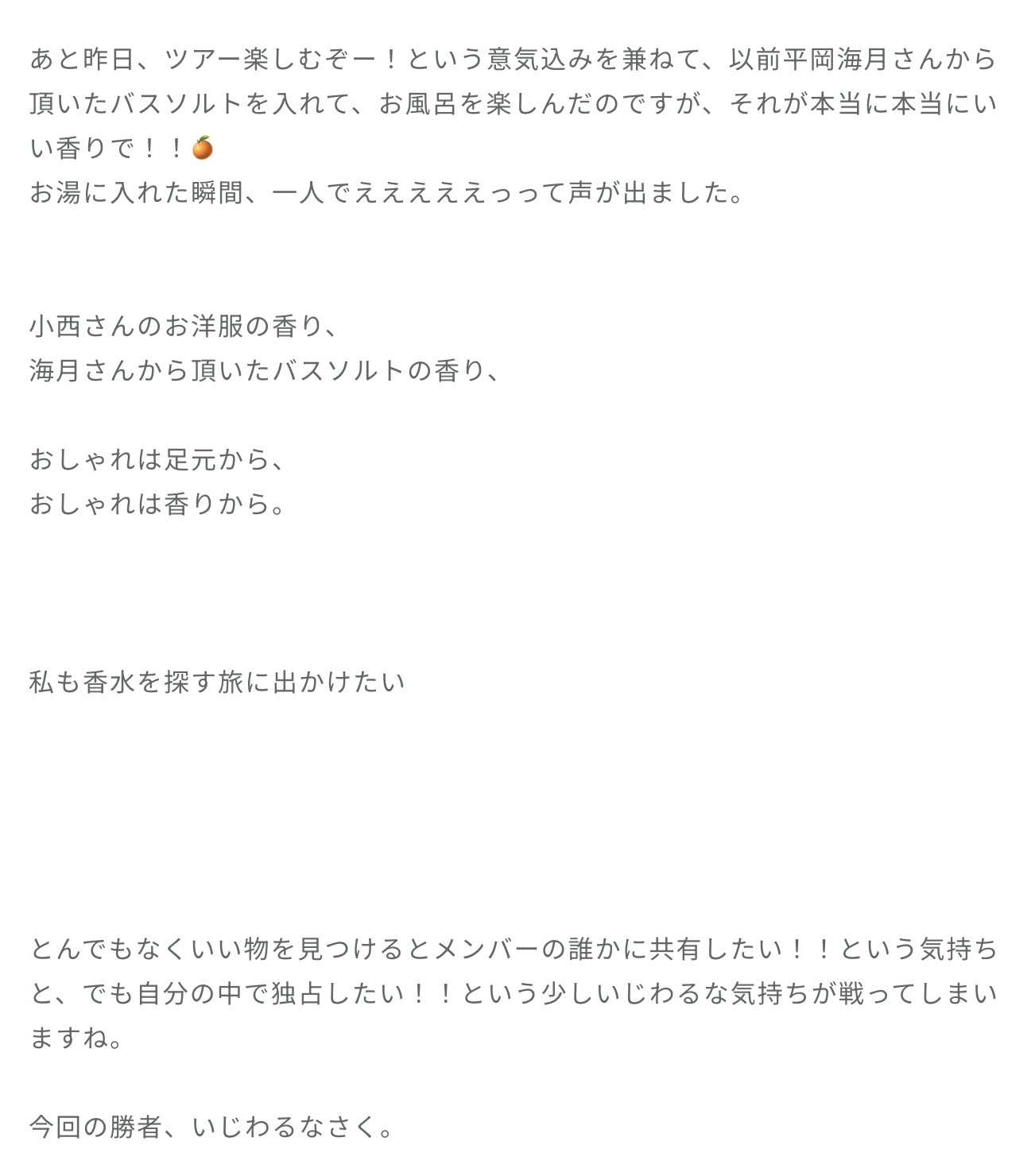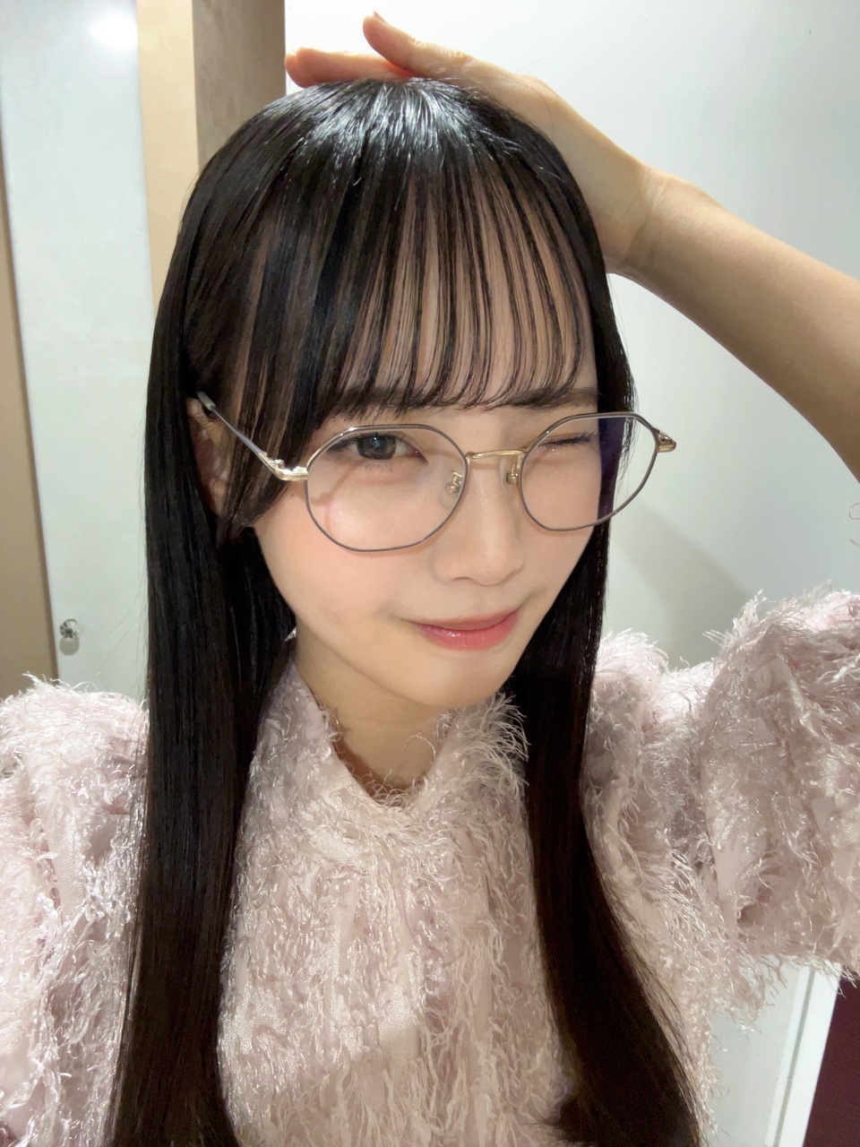 松尾桜「テンションが高い時に現れる、久しぶりのメガネ尾さんがやってくる訳ですが、、ウインクなんて決めちゃってね このお洋服、小西さんから頂いたお洋服なんです!!キャーー すごく良い香りがしました もう嬉しくて、着た日に小西さんとお会いしたのですが、お時間がなく、着用させて頂いてます!と言えなかったので、次着た際はお伝えしたいと思います!💗」