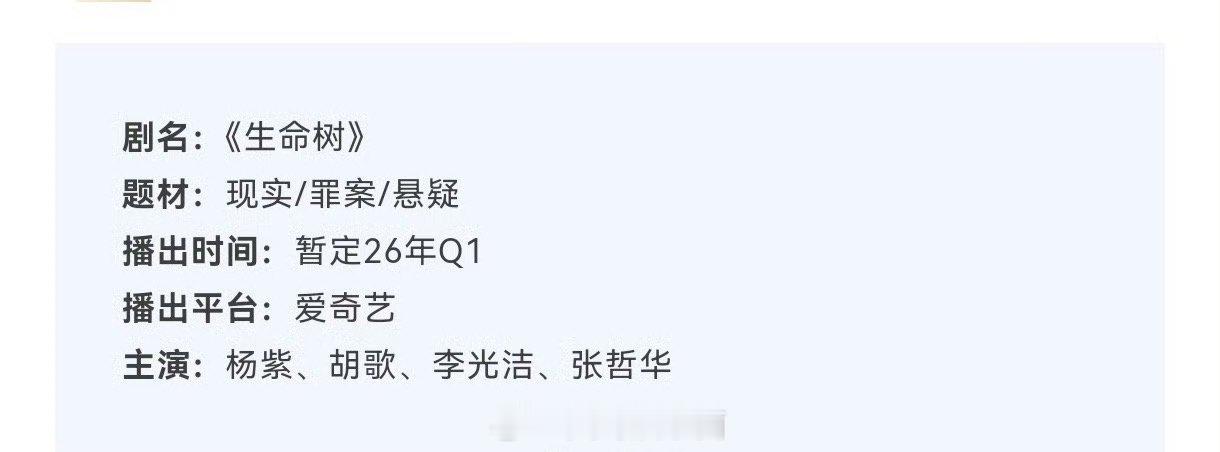 《生命树》播前招商,领衔主演杨紫和特别出演胡歌能扛住多少呢