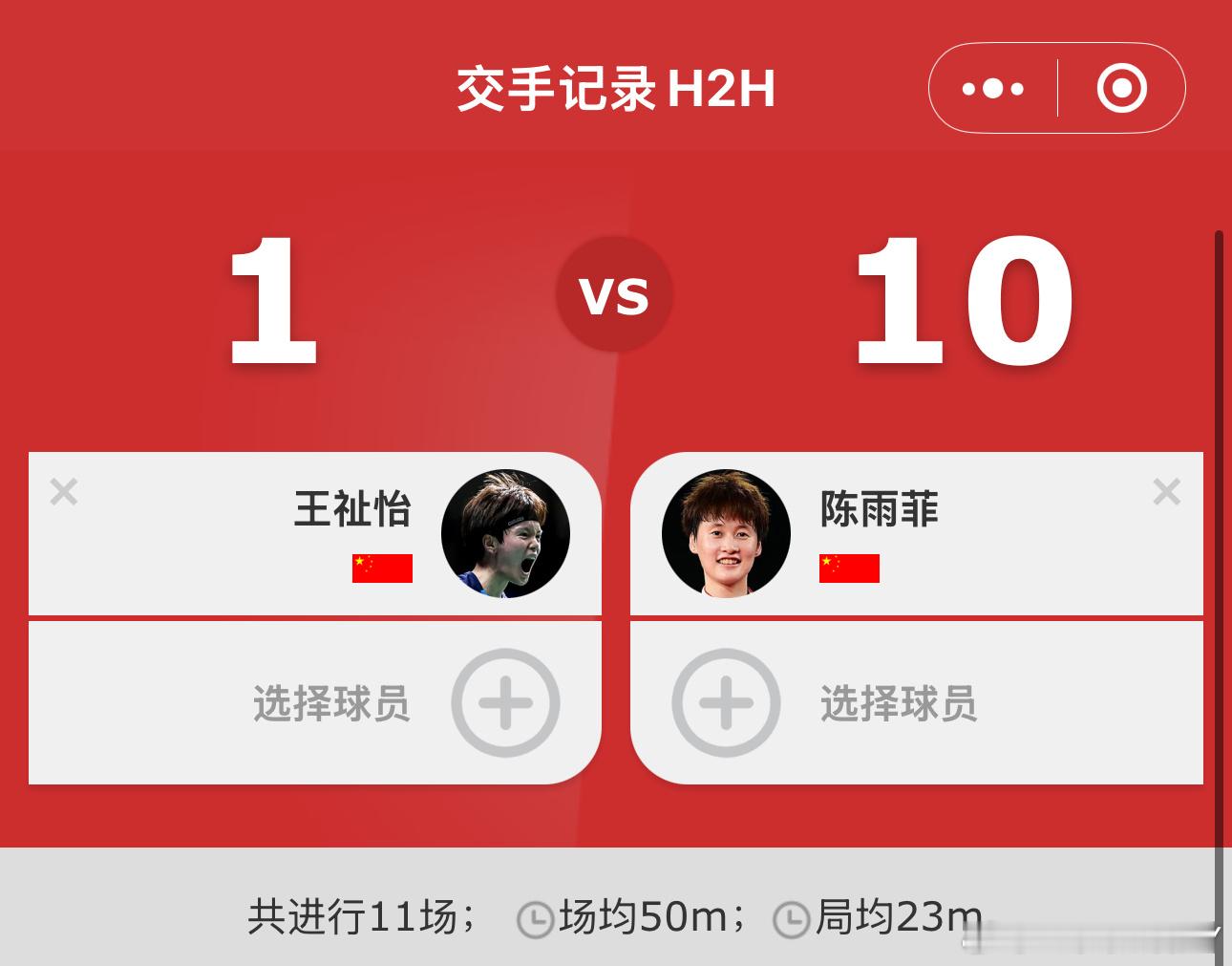 原来王祉怡只赢过一次陈雨菲而且那一次恰好我就看过去年亚锦赛女单决赛