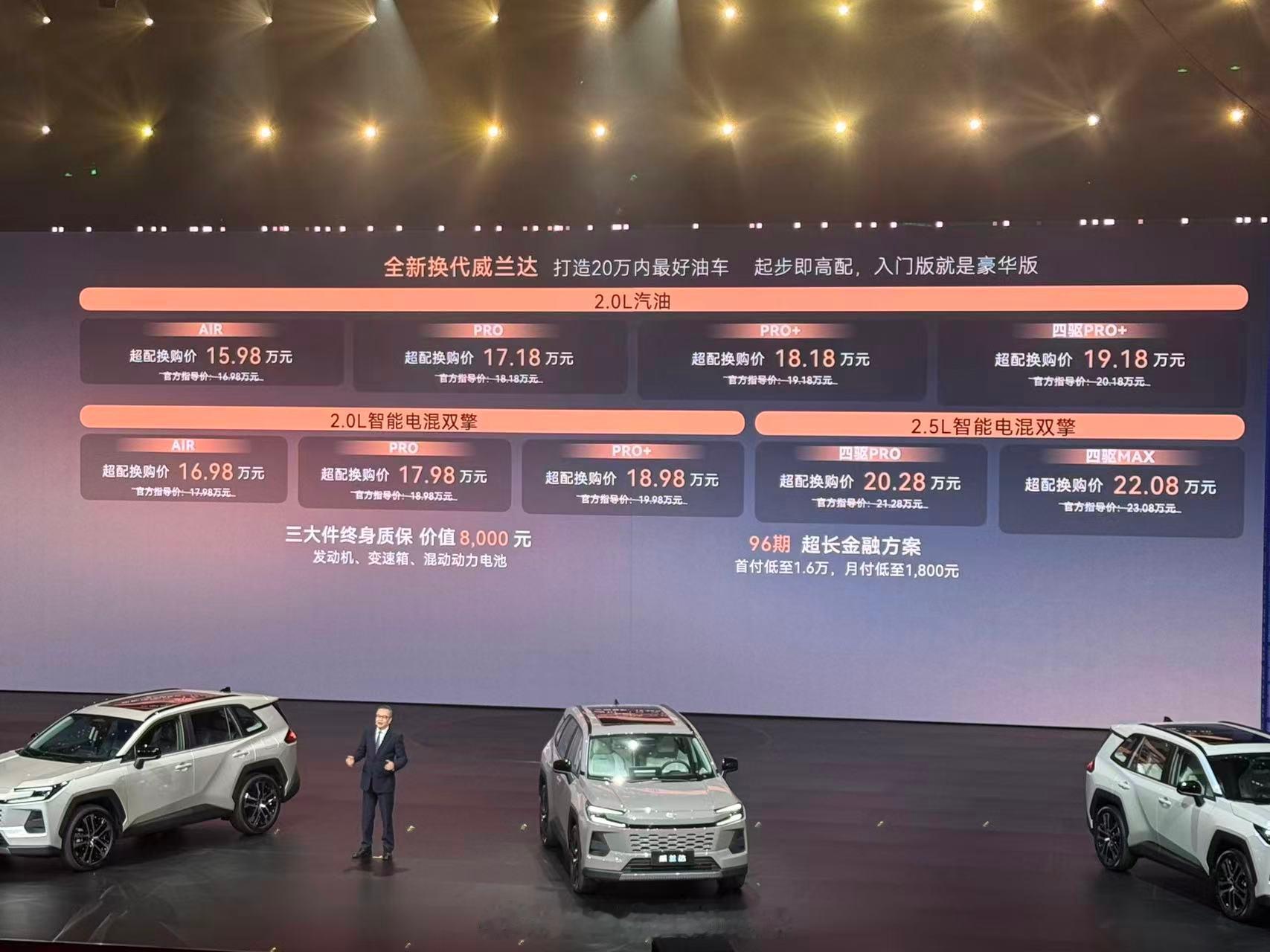 广州车展前热闹啊,全新威兰达跳过预售,抢着上市了,指导价16.98万-23.08万,全系1万元置换权益,15.98万-22.08万,所以超配换购价就到了15.98万-22.08万。 威兰达对应的是海外城市版/豪华版的外观,整体会斯文一些,轴距和老款保持了一致,车身刚性提升9.7%,关键悬挂安装点刚性提升30%。那威兰达这个车系一直都是强调轻越野的,海外RAV4的4就代表四驱,所以每代车型都多多少少和越野有些相应调教,比如DTC、DTV、E-FOUR电子四驱的四驱扭矩控制。所以这次威兰达的亮点,除了新增入门的2.0L混动之外,它的2.5L双擎版都是四驱车型,这套E-FOUR电子四驱支持前后轴100:0-20:80的动力分配的,扭矩控制比较有特色。而纯油的2.0L也有机械四驱版本!是的,纯油机械四驱,不过是作为顶配的,这个版本就相当情怀了。另一个亮点就是智能化,全系TSS4.0丰田智能驾驶辅助系统、专为中国用户研发的智能座舱,语言大模型智能语音系统上车,全车四音区免唤醒多指令同时对话等等。OMS座舱感知系统,支持10种手势控制,车内摄像头能感知乘员情绪主动推荐音乐,调节氛围灯,监测车内乘员的心率、血氧、呼吸频率等。