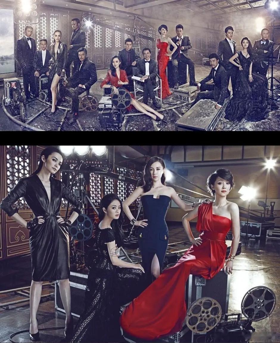 华谊之前这种艺人大合照现在好少见,从左到右分别是陆毅邓超姚晨张涵予苏有朋霍思燕李晨王中磊徐帆段奕宏廖凡冯绍峰安以轩杜淳,现在公司有大合照的应该只有时代峰峻四世同堂