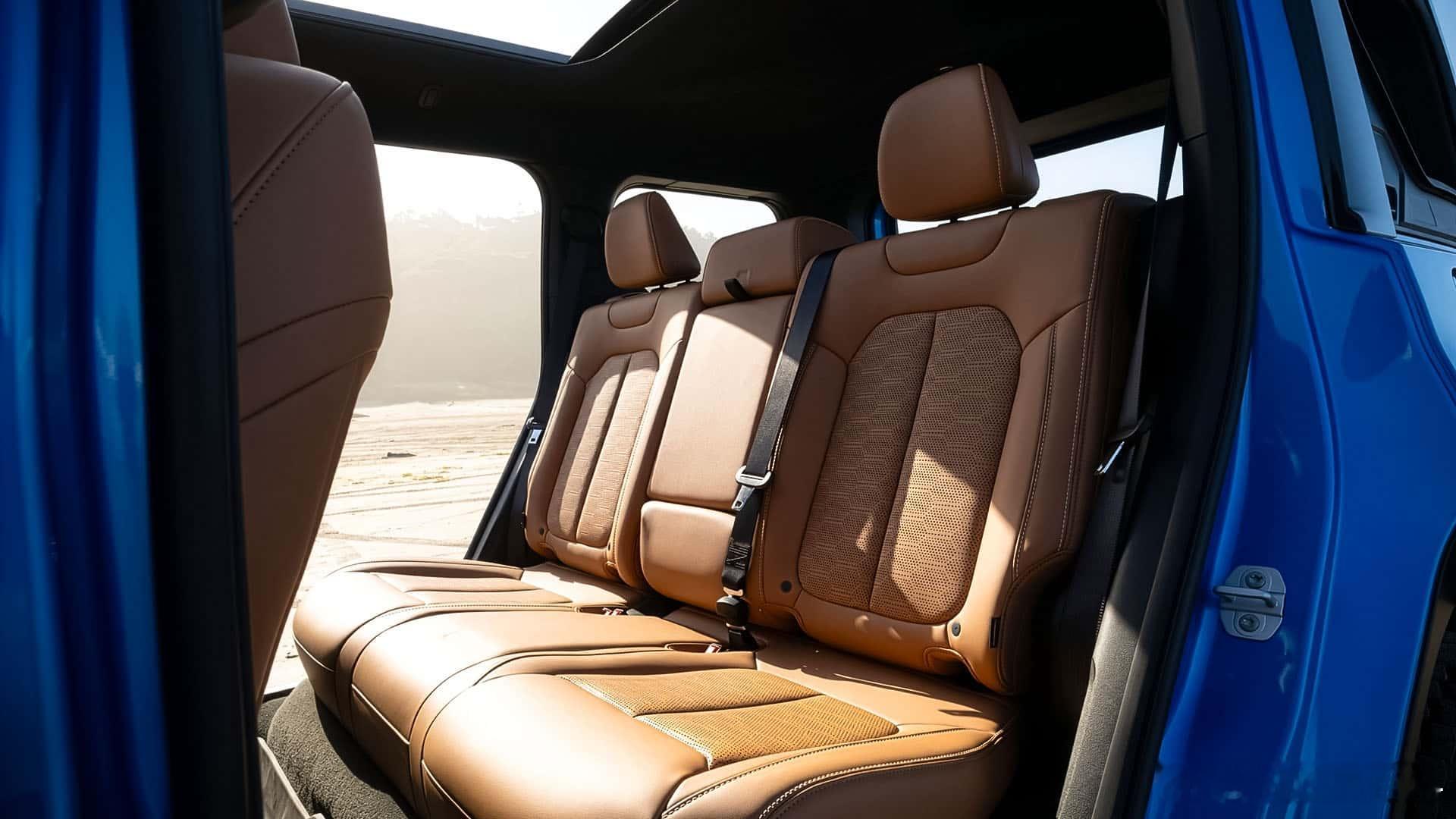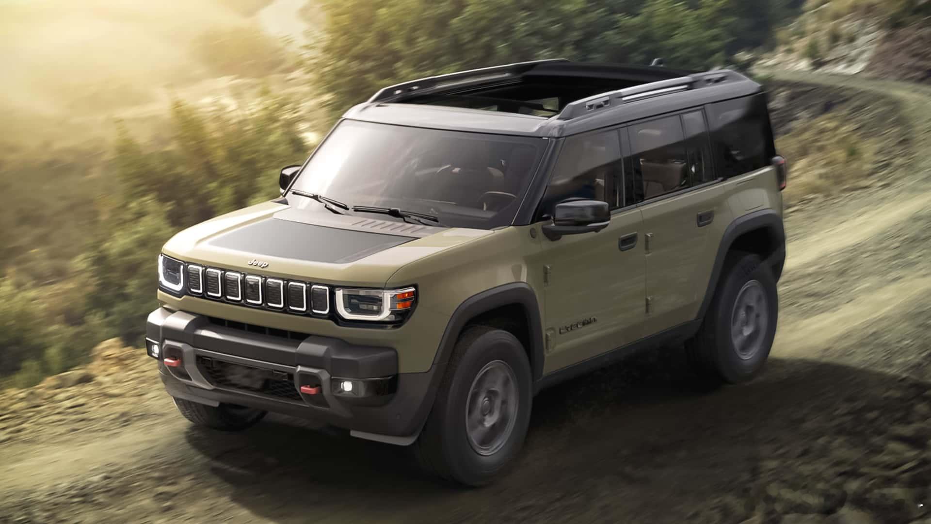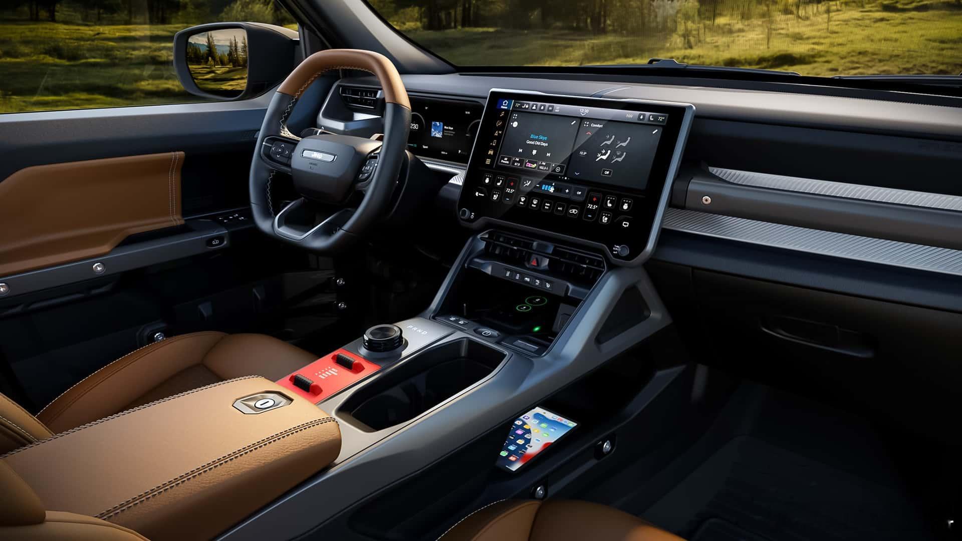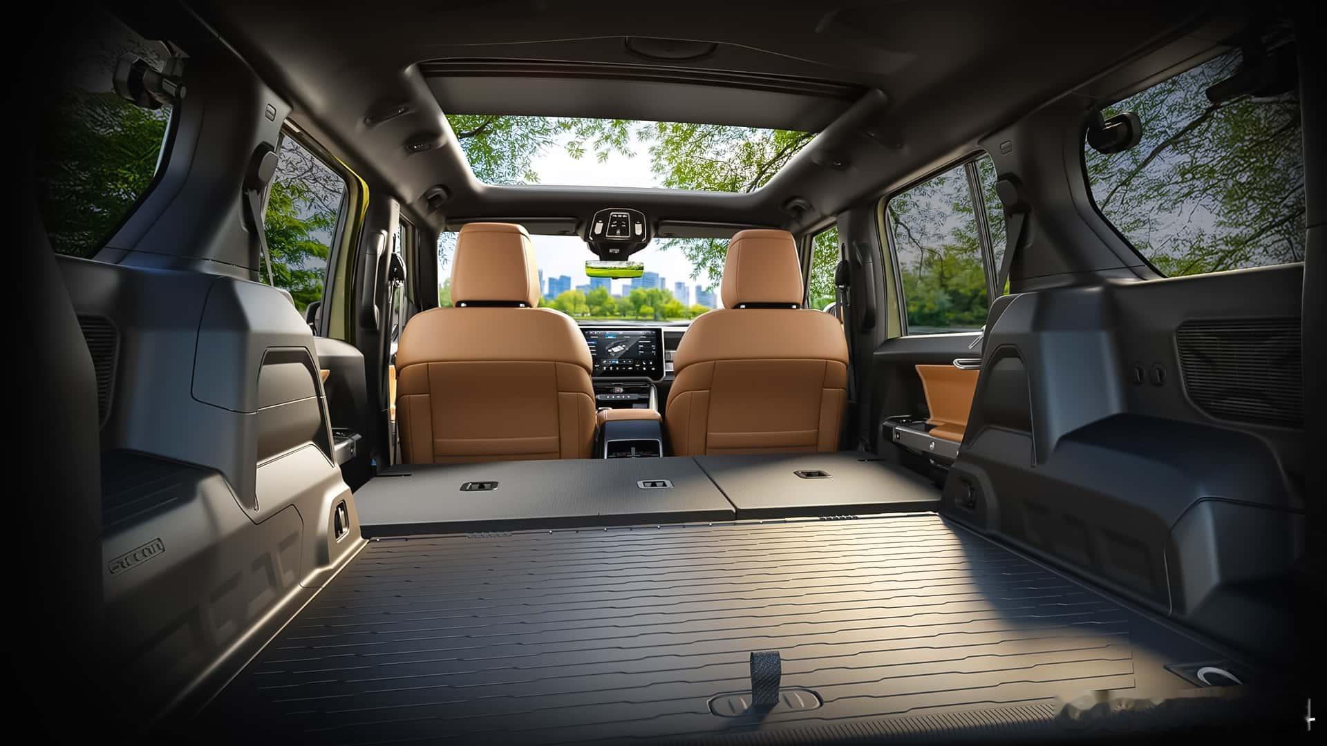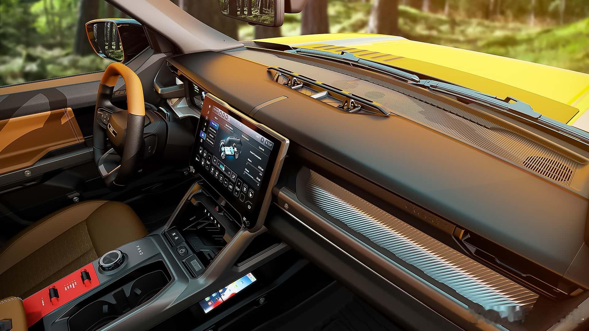 还记得 吗?其实 也有对标产品——Recon,官方定位就是牧马人的纯电动兄弟相比起智趣烈马大刀阔斧的城市化、露营化,同为承载式平台的Recon则保留了牧马人精髓的可拆卸车门和三排侧窗不过拆之前,记得带上单独的后视镜支架(图5),这或许是给设计bug打了个补丁吧虽然车顶不能拆,但标配了电动全景天窗,可选装超大尺寸的电动软顶天窗,实现了近似于敞篷的驾驶体验承载式车身能拆门,这在方盒子领域还是头一遭内饰不可避免走向智能和豪华,标配12.3吋液晶仪表和14.5吋车机,大刀阔斧砍掉大部分物理按键,但是在细节上依旧保持了硬朗与野性,而且拼搭配色也让氛围更显跳脱;不仅储物空间无处不在,仪表台顶部还保留了拓展支架,可以直接安装运动相机;至于后排,无需掀起坐垫即可完全放平,后备厢容积最大1866L,还有85L前备厢尺寸方面,Recon比四门牧马人还要长5英寸,宽度更宽,高度相当,但轴距短了6英寸,整备质量6112磅(2.77吨)平台采用道奇Charger、Jeep Wagoneer S同款STLA Large平台,搭载650马力/841N·m双电机和100.5度电,3.6s破百,纯电续航400+km,极速180kph前桥电机终传比11:1,不带锁;后桥终传比15:1,带电控差速锁;Moab操刀的Selec-Terrain地形模式五种可选,包括岩石攀爬;搭配230mm离地间隙、33.8°接近角、33.1°离去角、23.3°通过角,以及可控且精准的油门调教,提升越野体验